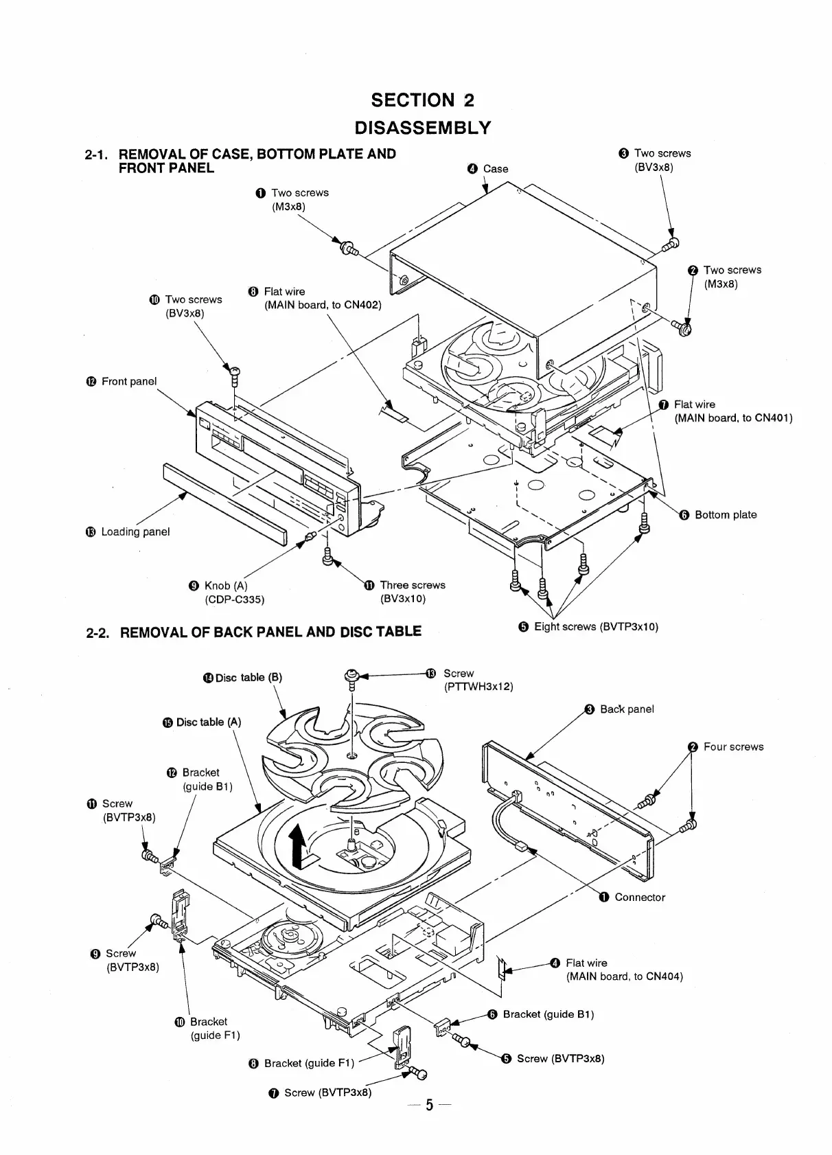 Sony CDP-C245 - Disassembly; Removal of Case, Bottom Plate and Front Panel
