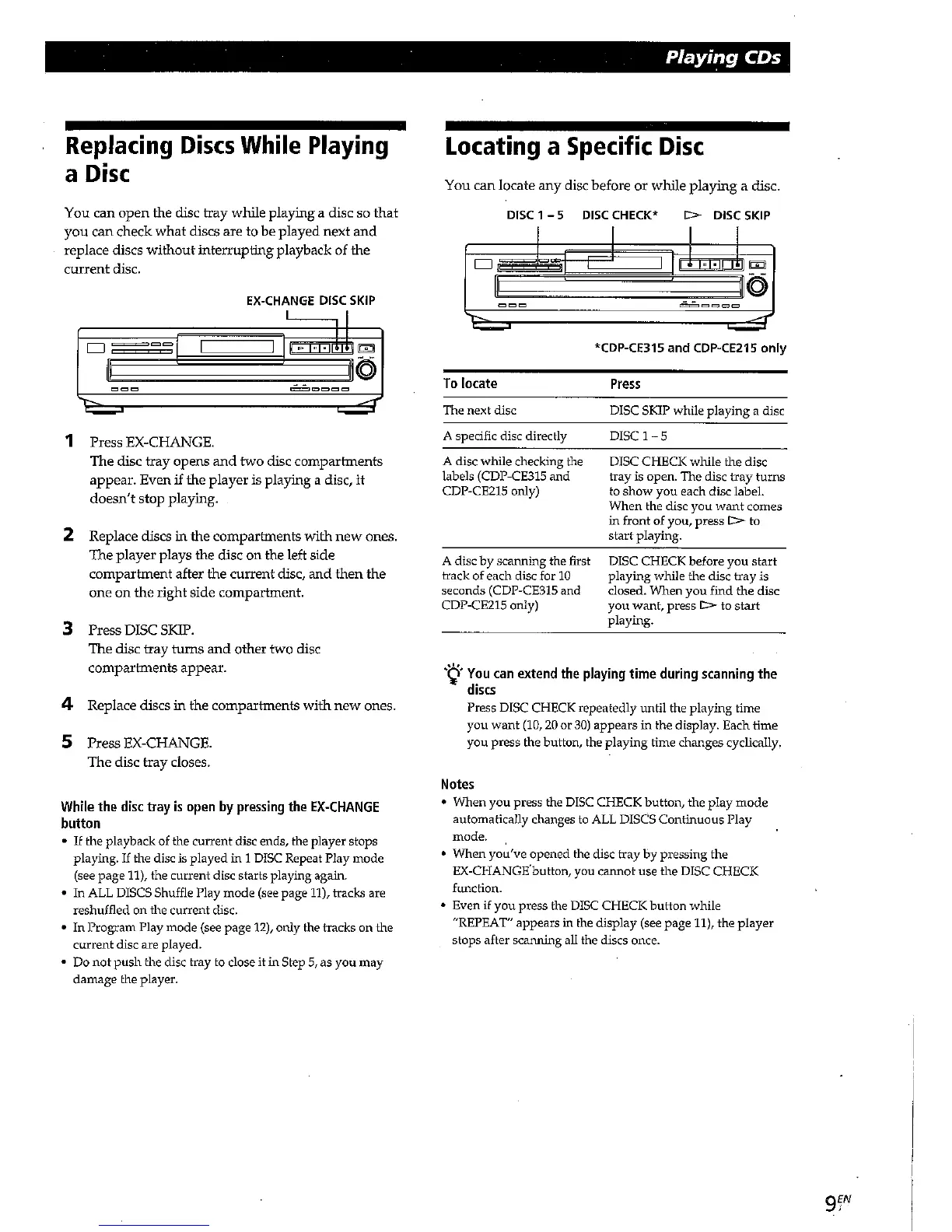 Sony CDP-C260Z - Playing CDs; Replacing Discs During Playback; Locating Specific Discs