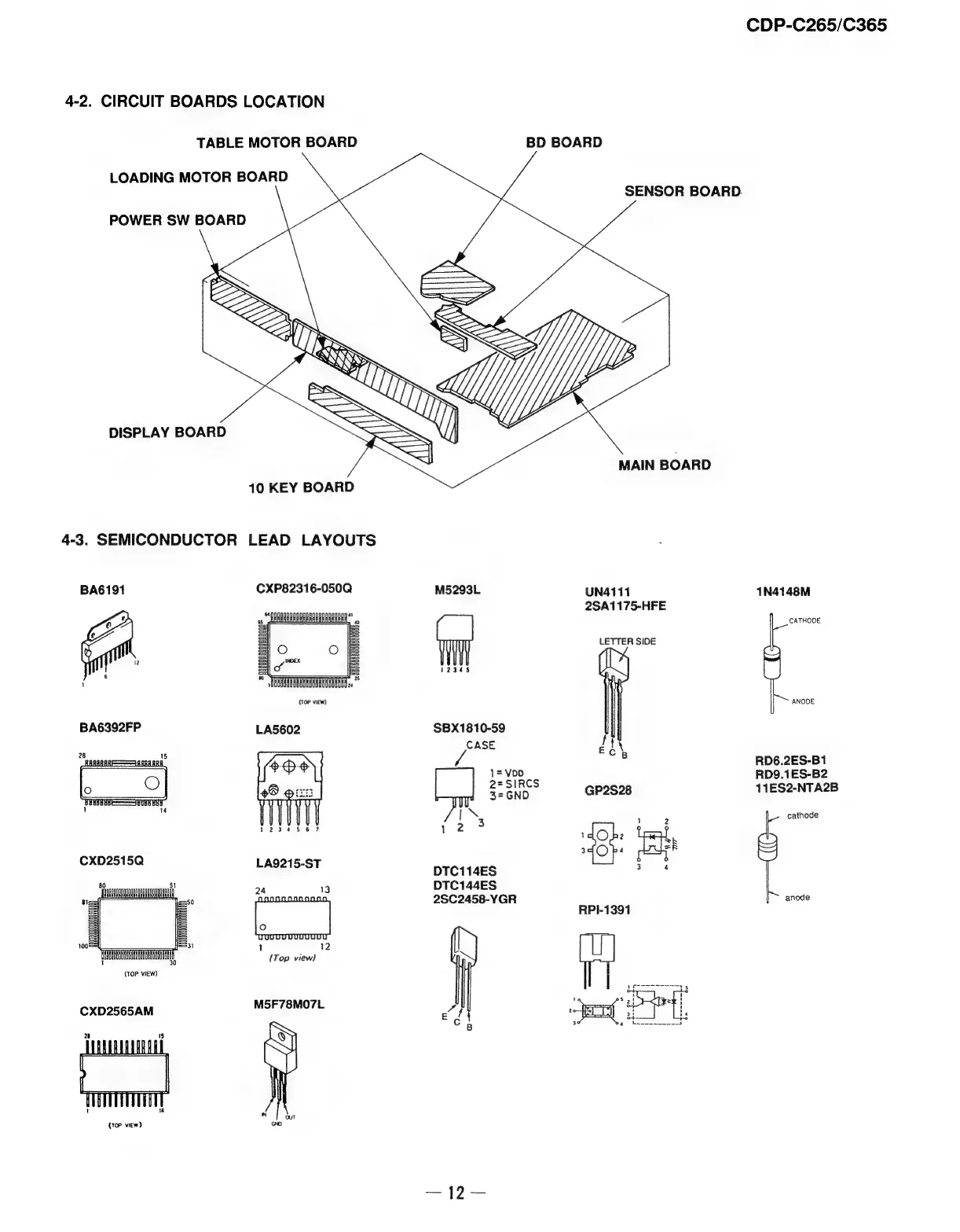 Sony CDP-C265 - 4-2. CIRCUIT BOARDS LOCATION; 4-3. SEMICONDUCTOR LEAD LAYOUTS