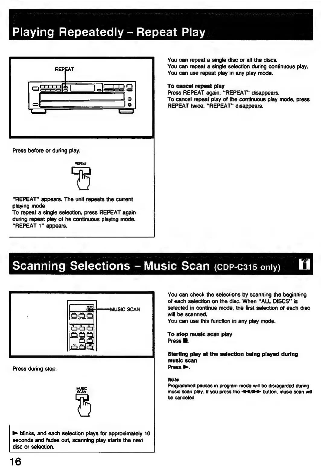 Sony CDP-C315 - Repeat Play and Music Scan; Repeat Playback Modes; Music Scan Feature