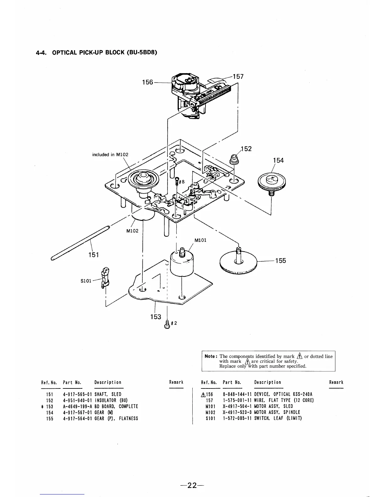 Sony CDP-C325M - Optical Pick-up Block Exploded View; Optical Pick-up Block Details