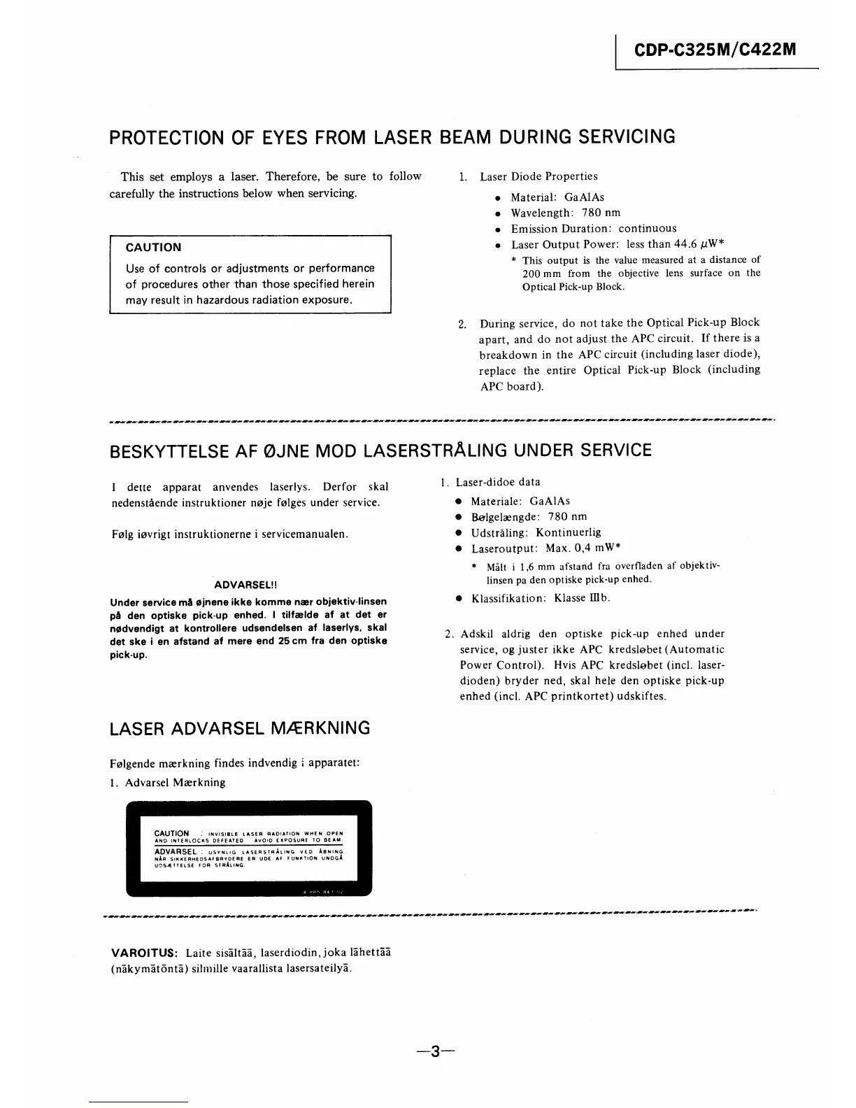 Sony CDP-C325M - Laser Safety During Servicing; Laser Diode Technical Properties; Optical Pick-up Servicing Guidelines