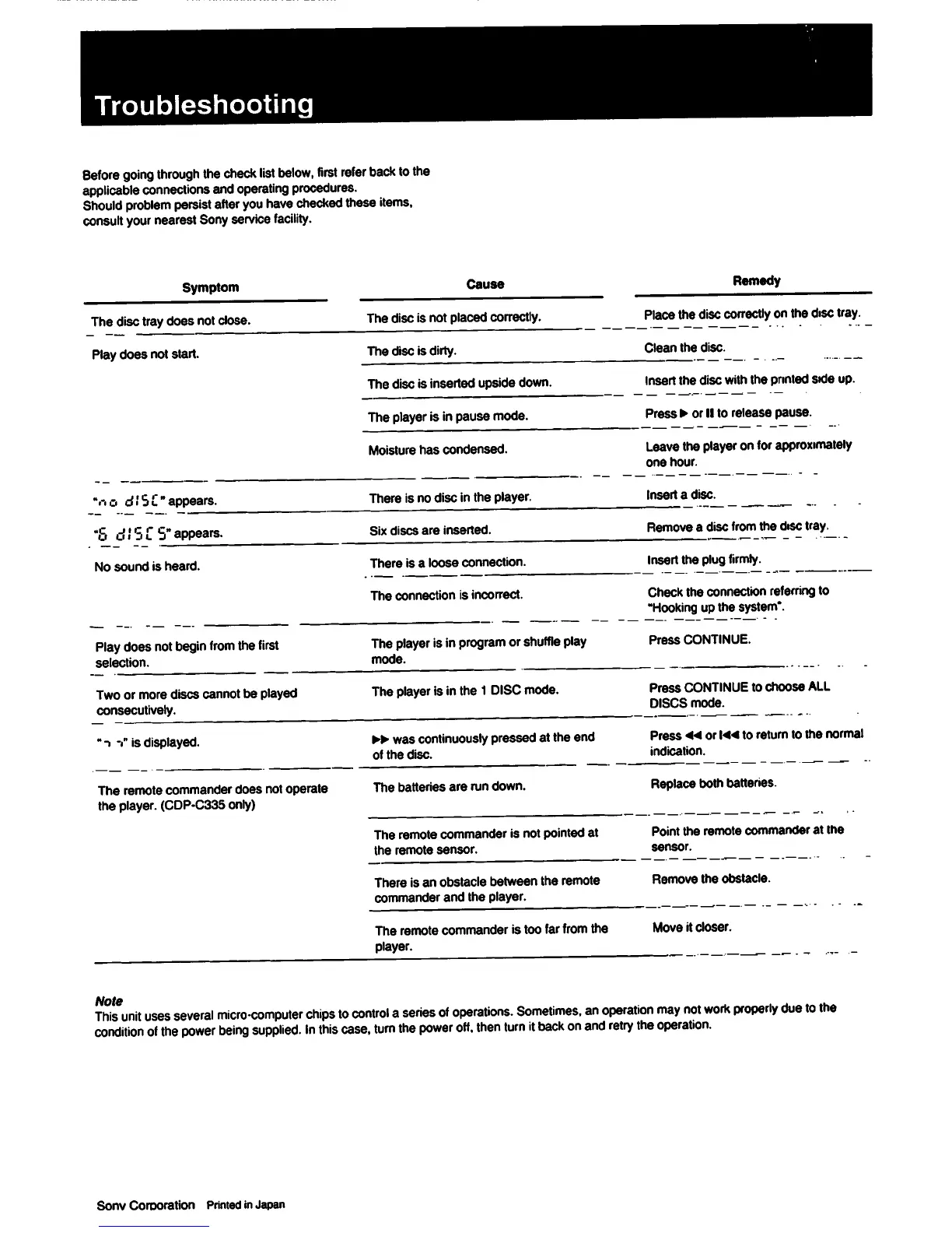 Sony CDP-C335 - Troubleshooting