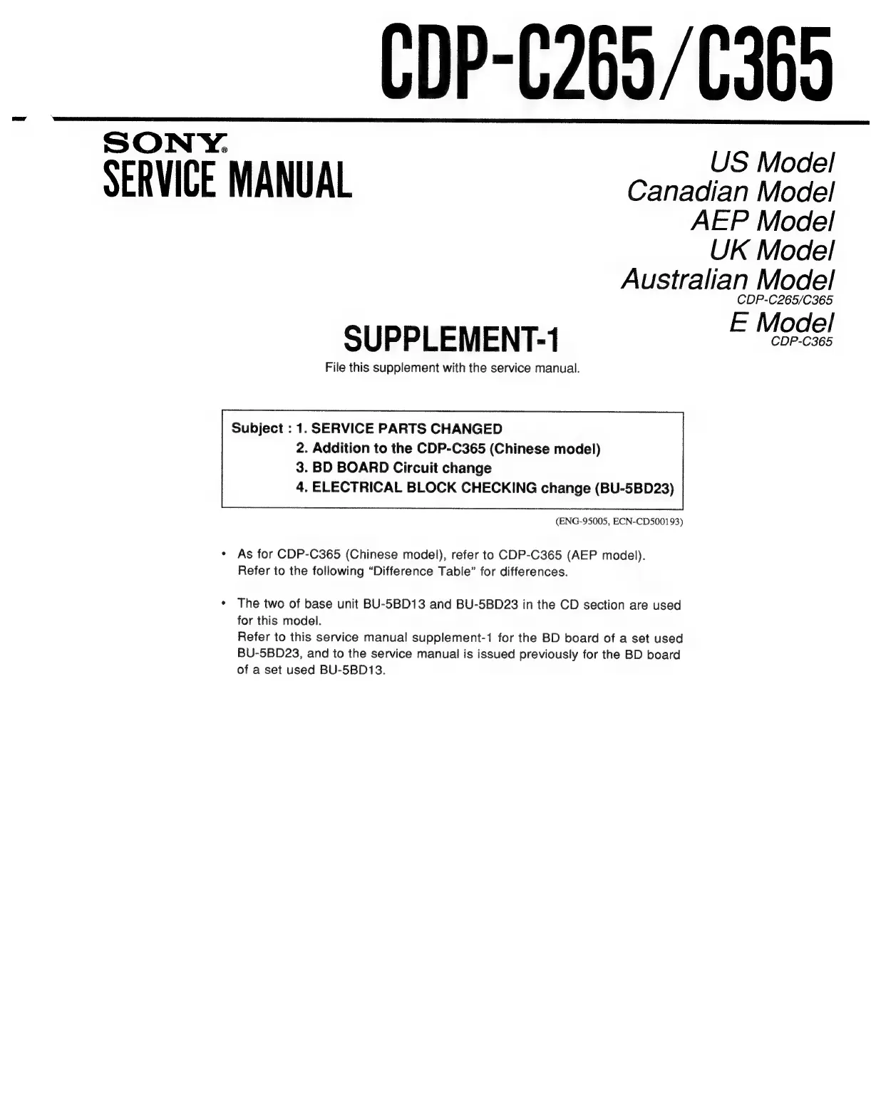 Other manuals for Sony CDP-C365