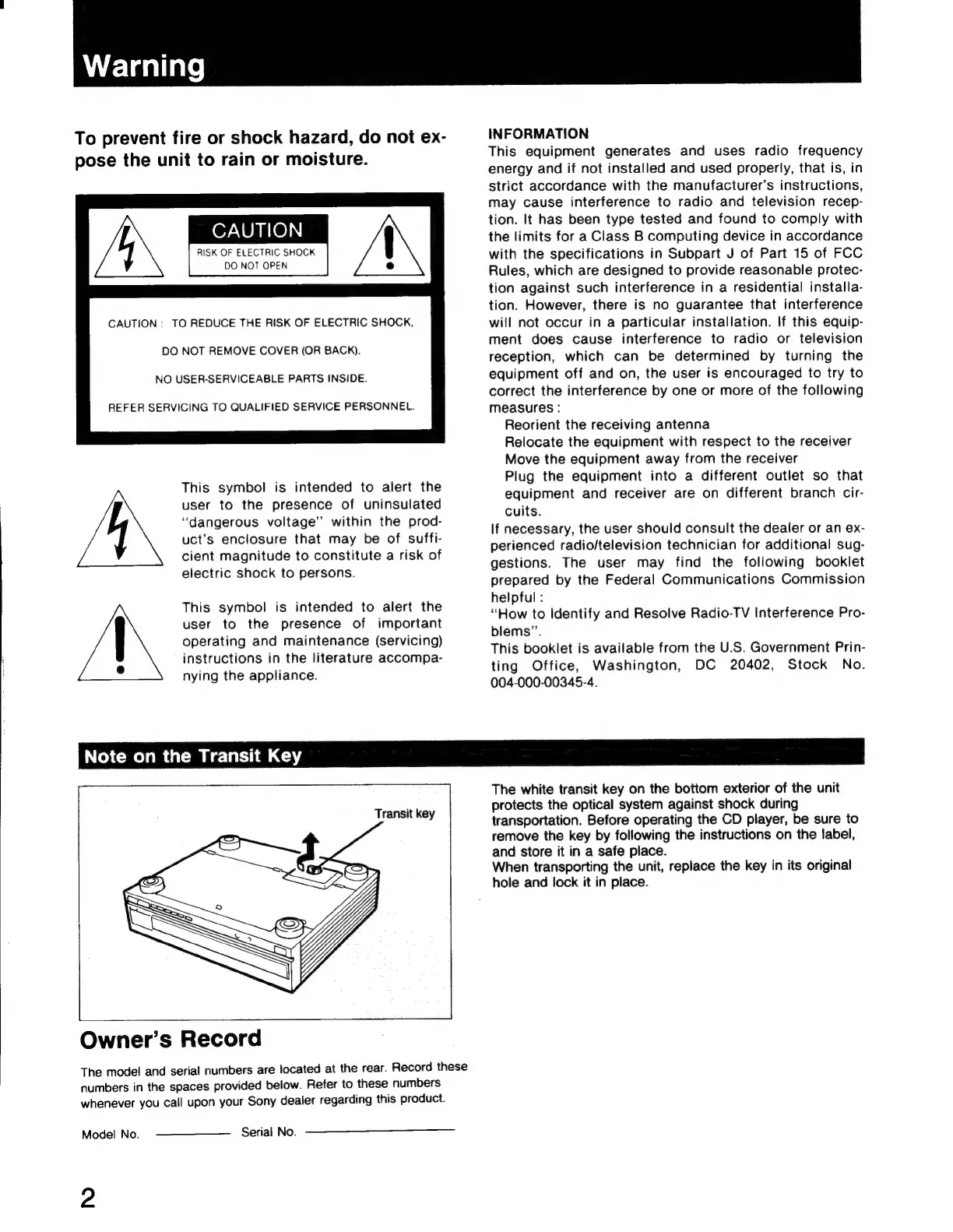 Sony CDP-C401 - Owners Record