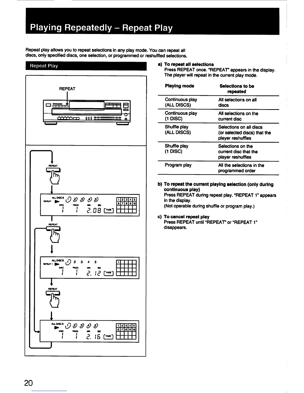 Sony CDP-C435 - Playing Repeatedly - Repeat Play