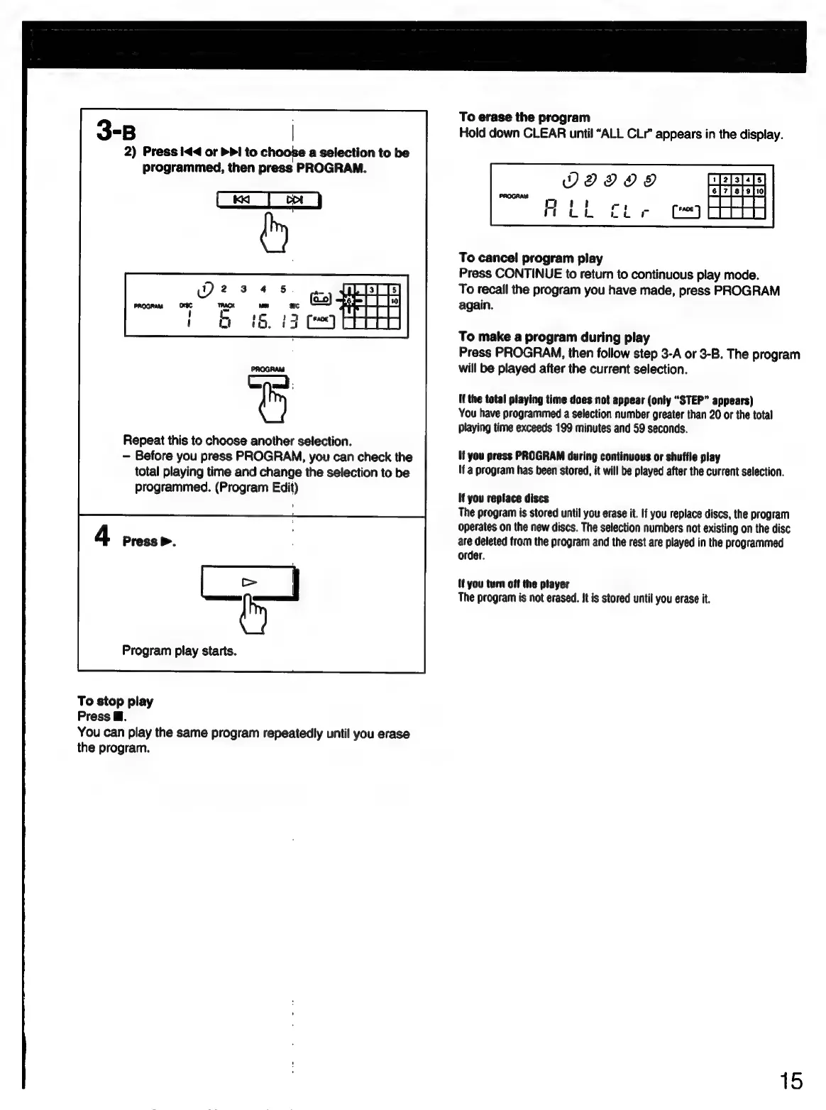 Sony CDP-C445 - Program Play Advanced Functions; Erasing and Cancelling Programs; Program Play in Other Modes; Program Management with Disc Changes