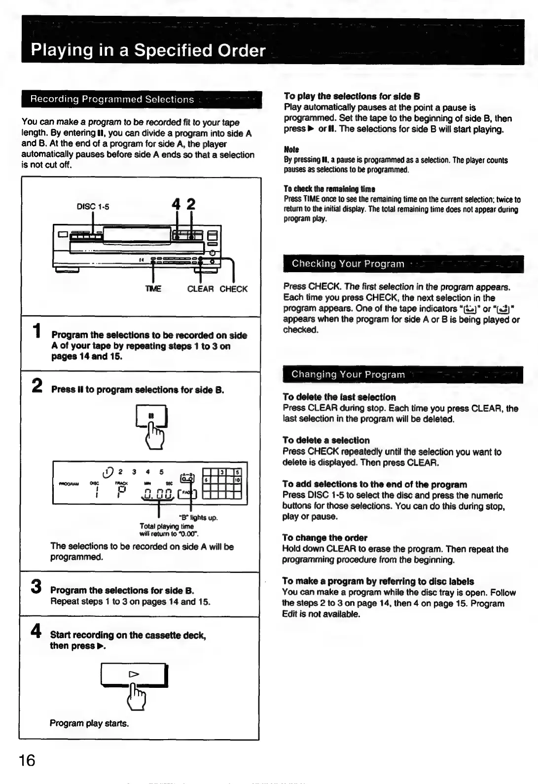 Sony CDP-C445 - Recording Programs to Tape; Creating Tape Recordings from Programs; Checking and Editing Tape Programs