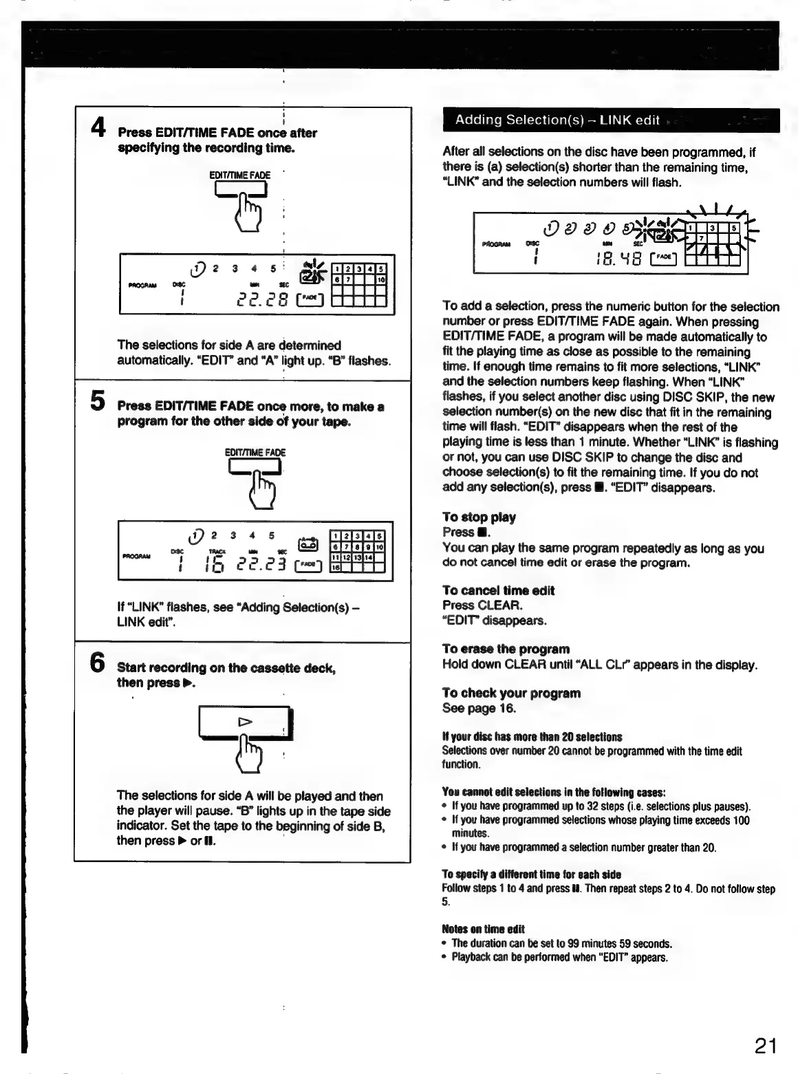 Sony CDP-C445 - Time Edit: Linking and Program Management; Automatic Selection Linking; Cancelling and Erasing Time Edit; Limitations of Time Edit Function