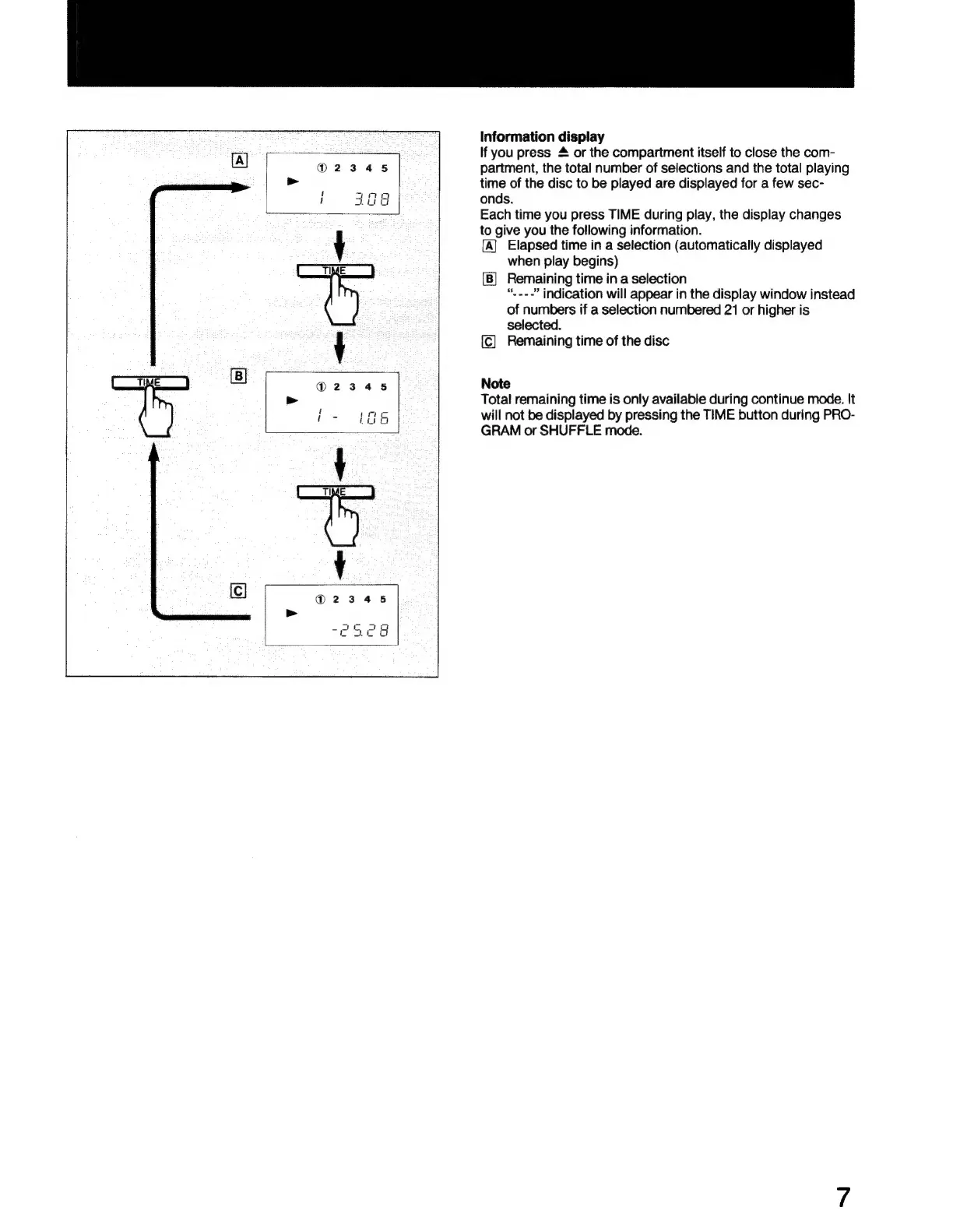 Sony CDP-C500 - Information Display; Display Information During Play; Note on Remaining Time Display