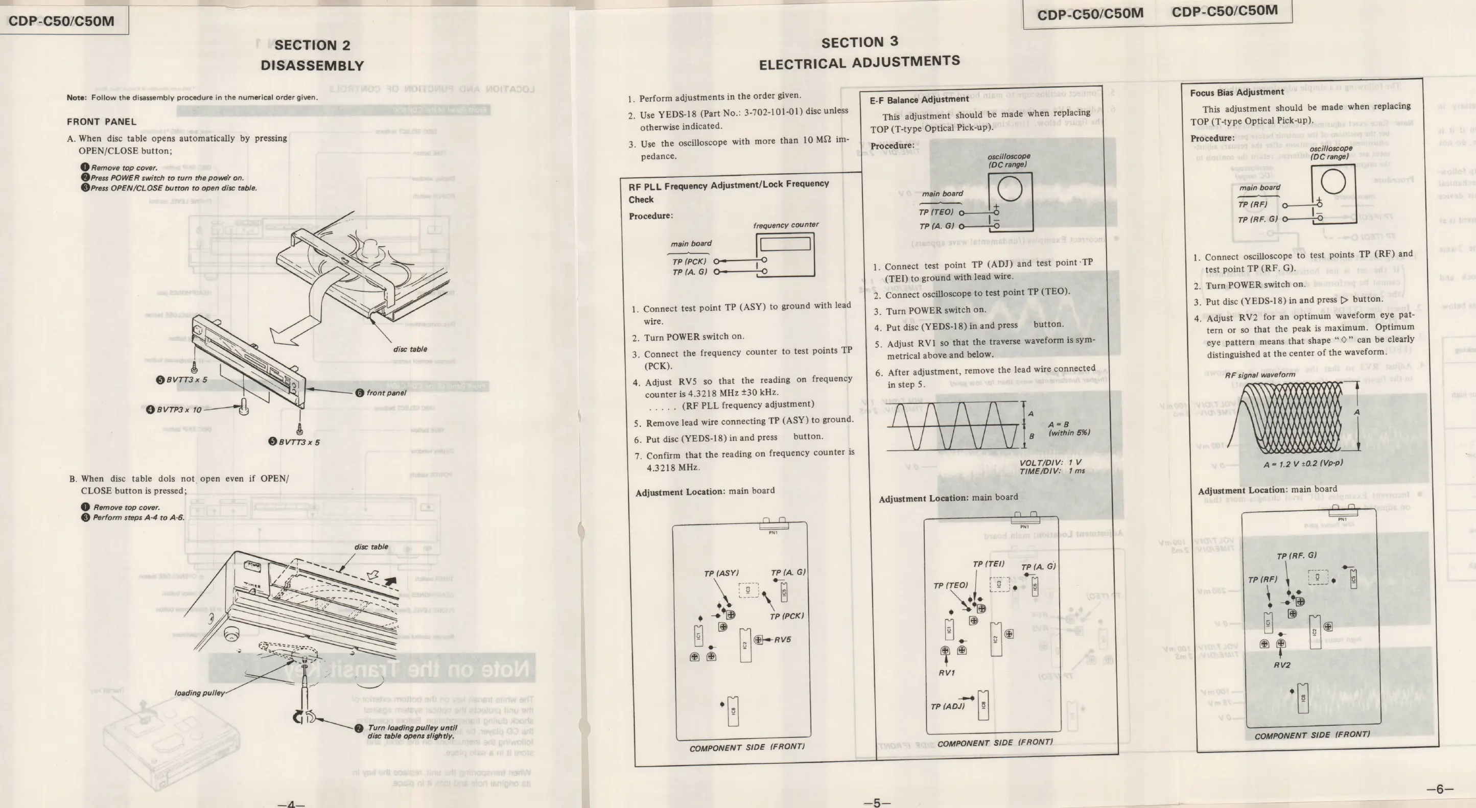Sony CDP-C50M - Section 2 Disassembly; Front Panel Disassembly Procedure; Section 3 Electrical Adjustments; RF PLL Frequency Adjustment;Lock Frequency Check