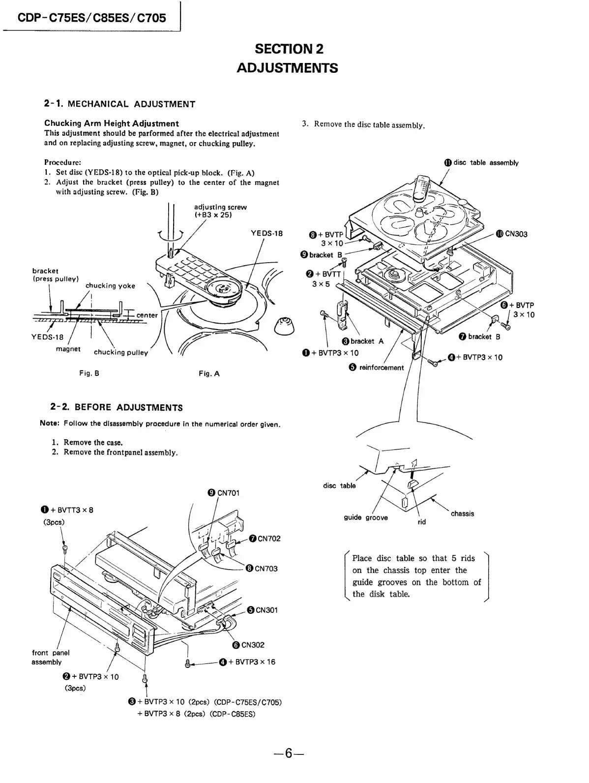 Sony CDP-C75ES - 2 Adjustments; 2-1. Mechanical; Before Adjustments