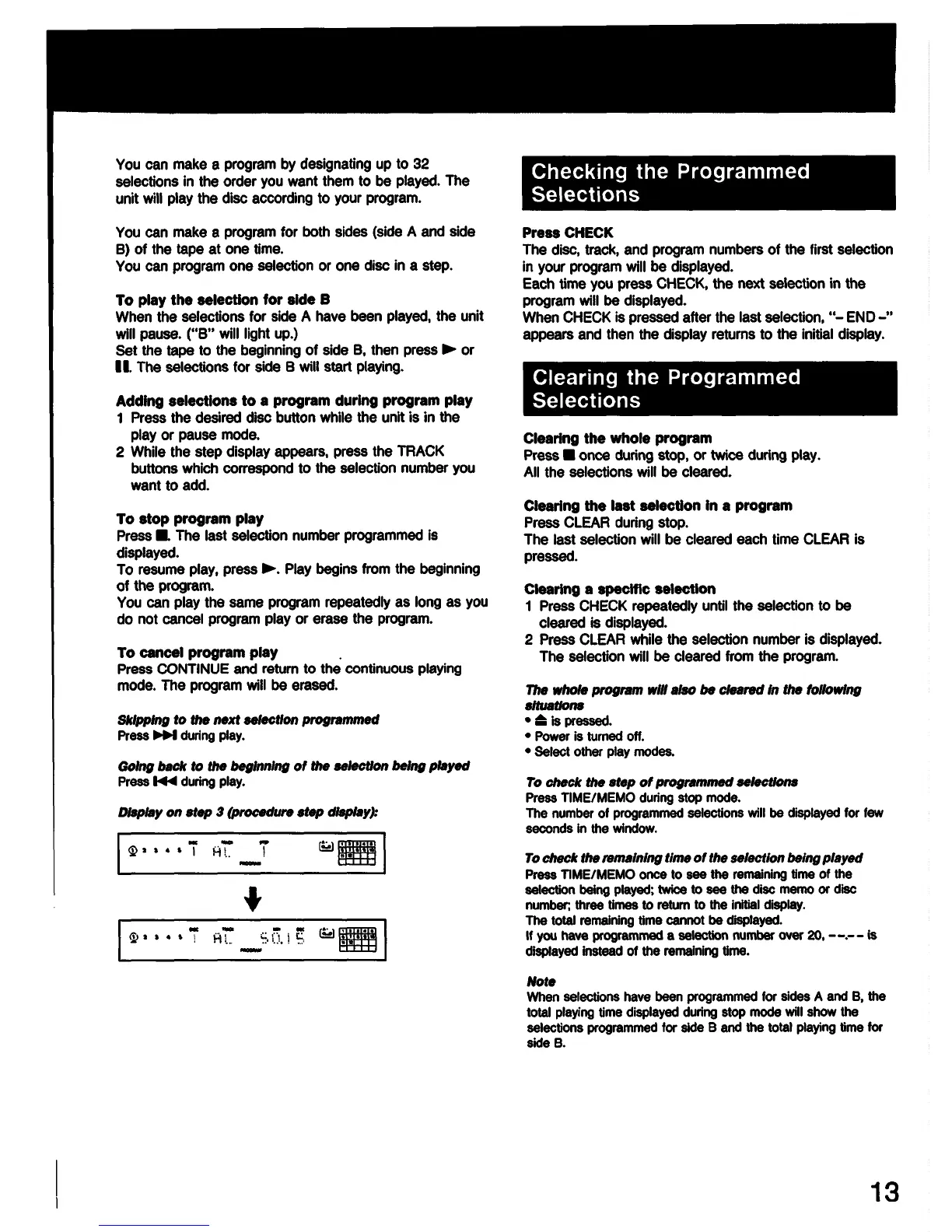 Sony CDP-C77ES - Programmed Selection Management; Checking and Clearing Programs