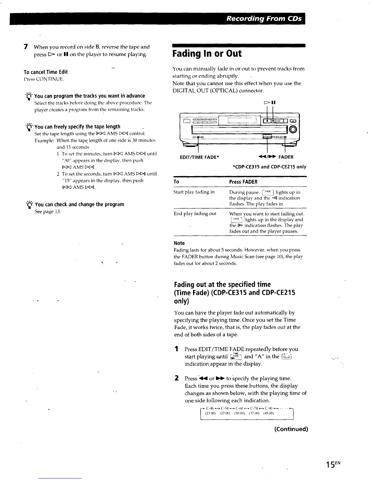 Sony CDP-CE215 - Audio Effects for Recording; Manual Fade In;Out; Timed Fade Out (Time Fade)