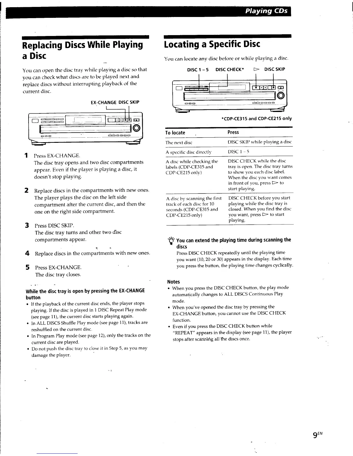 Sony CDP-CE215 - Disc Management During Playback; Replacing Discs While Playing; Locating Specific Discs