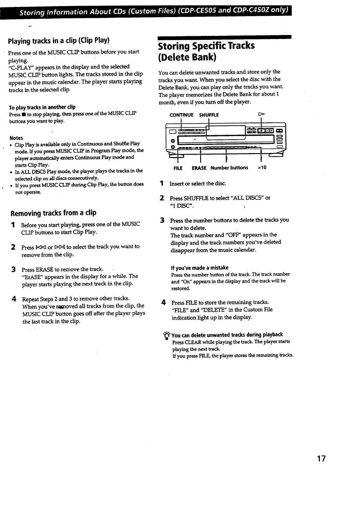 If you pressFILE, theplayerstoresthe remainingtracks.
