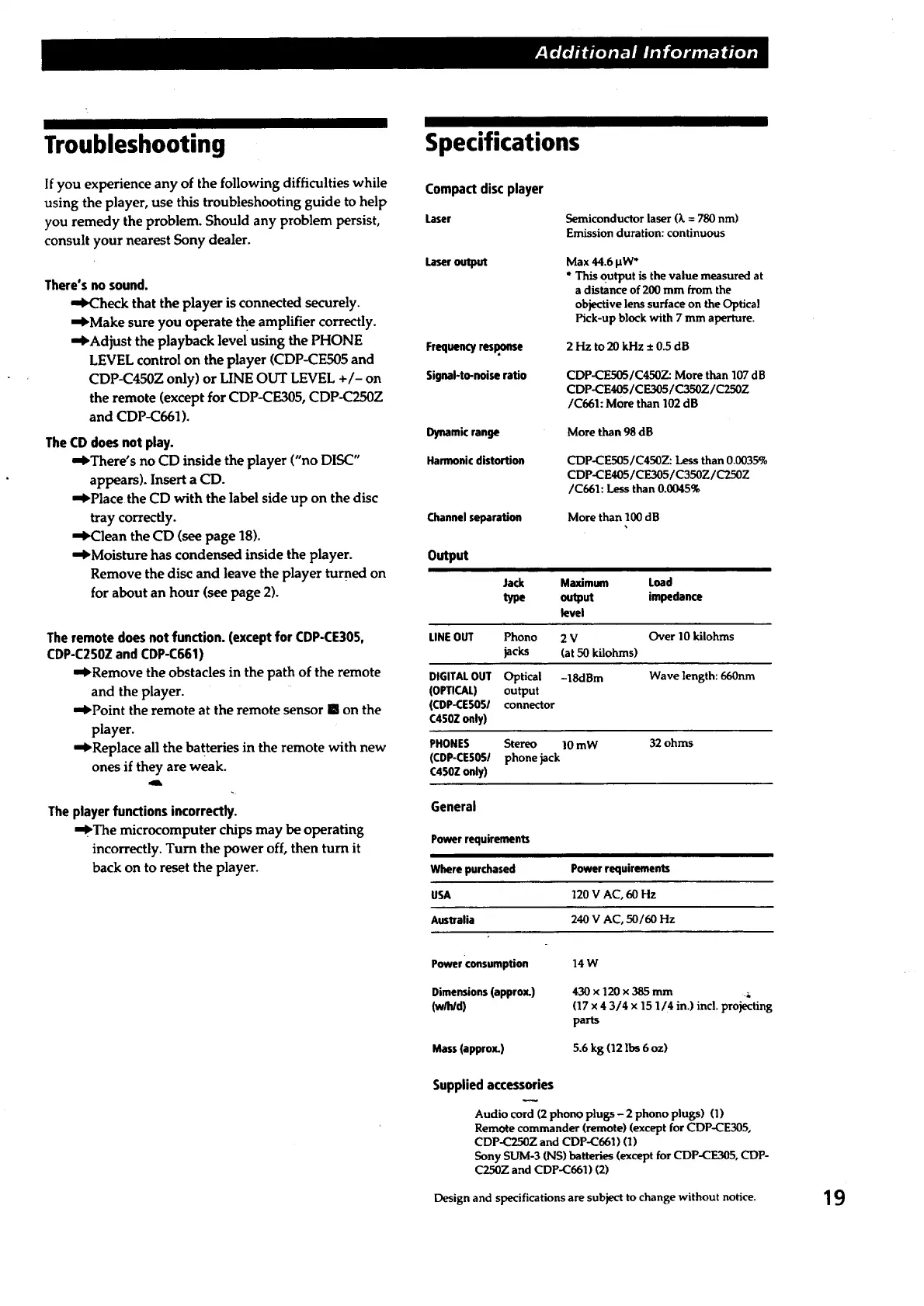 Design and specifications are subject to change without notice. 19