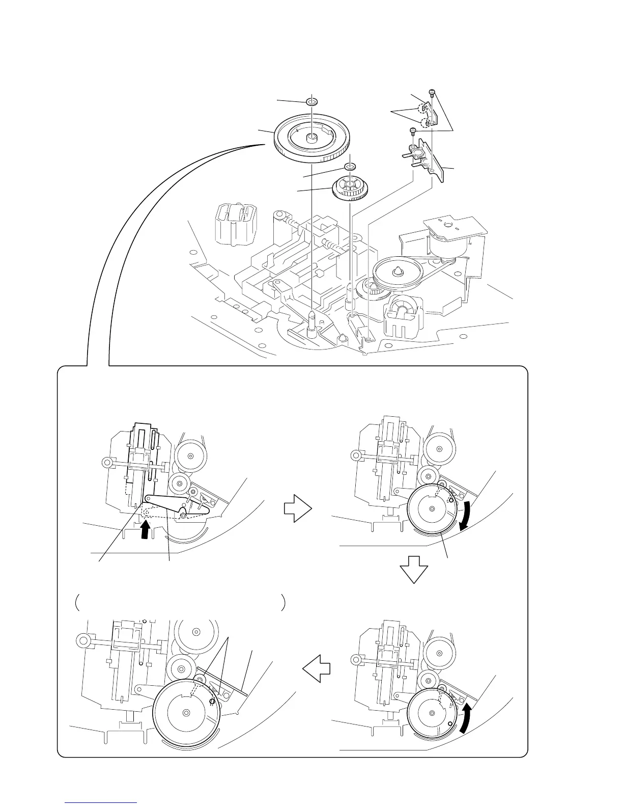 Install the gear (door.cam) in the direction shown