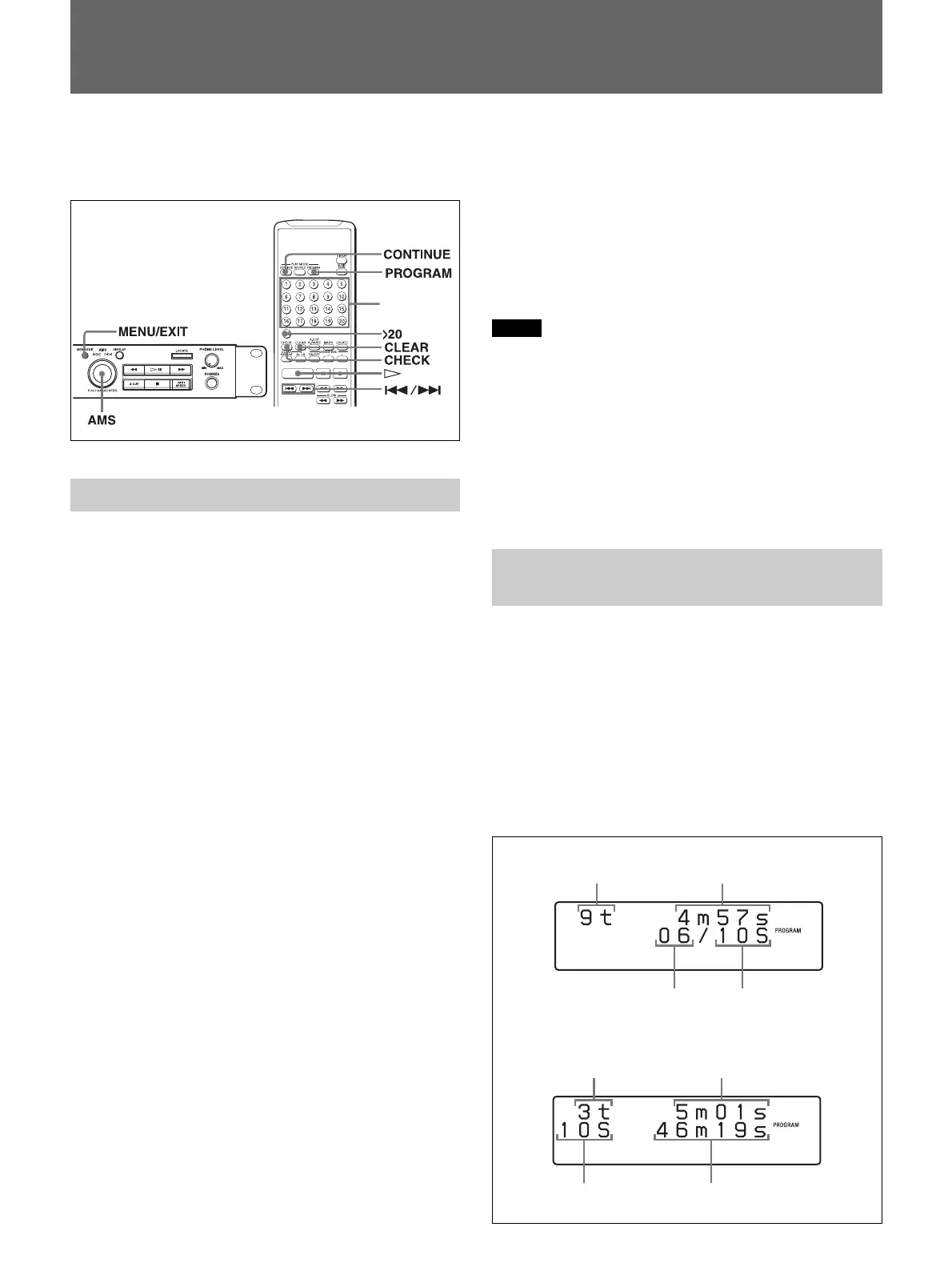 and playing time of each of the programmed tracks are