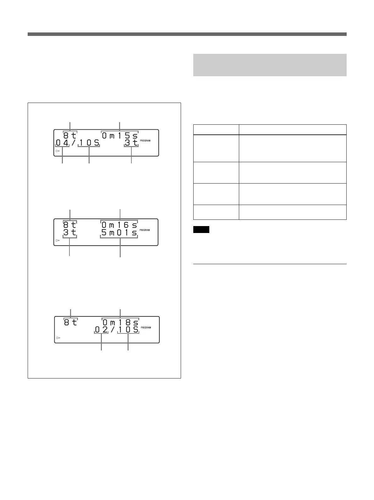 succeeding tracks in the program are displayed in