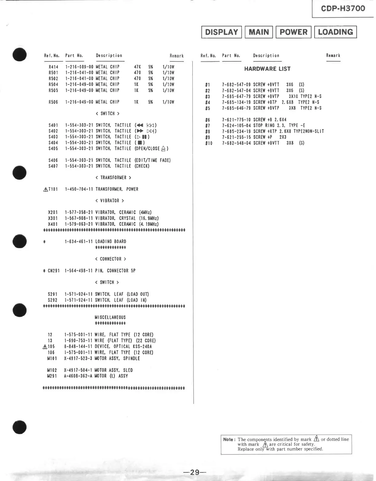 HARDWARE LIST