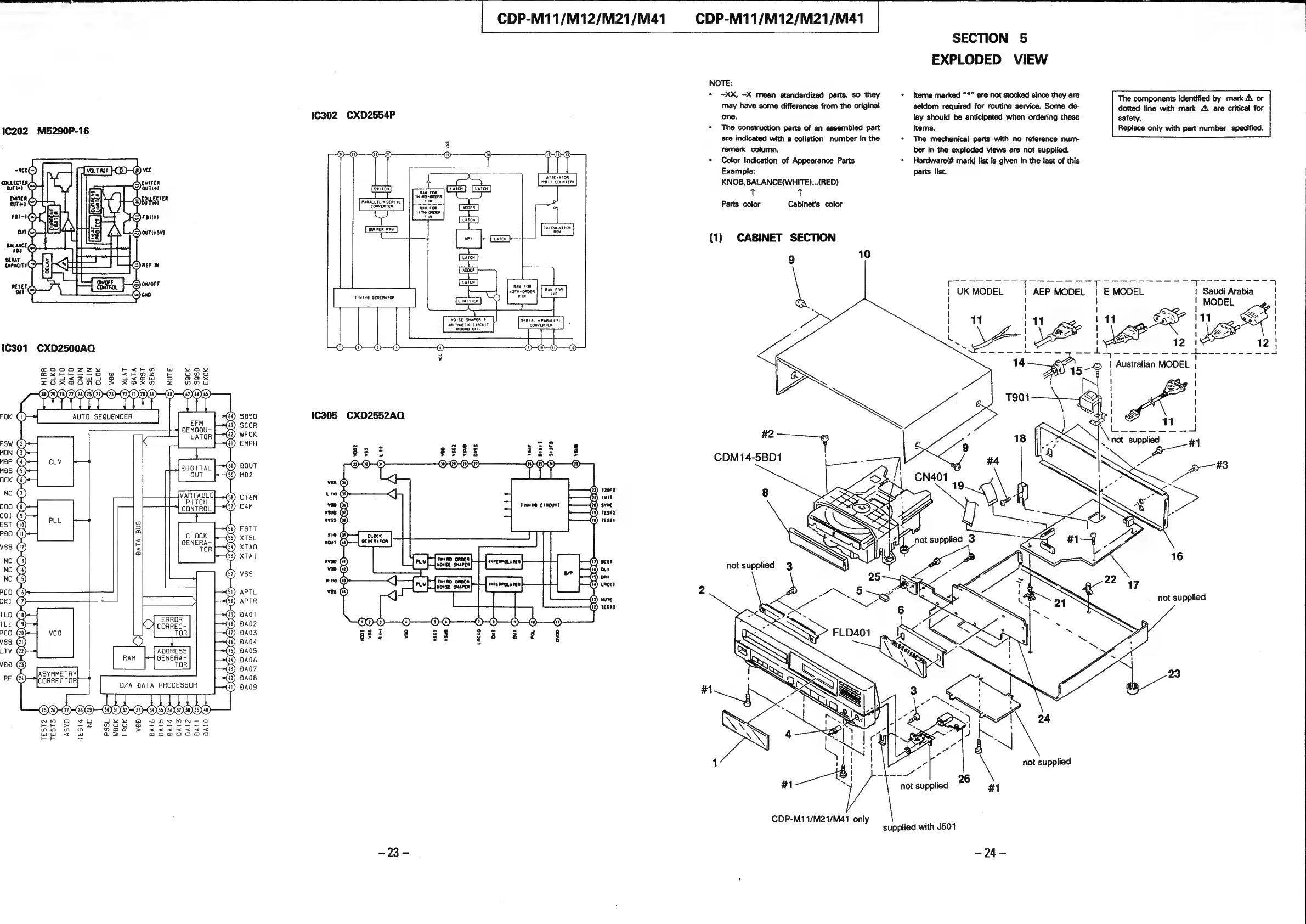 Sony CDP-M11 - Exploded Views and Parts Identification; Cabinet and Internal Mechanical Views