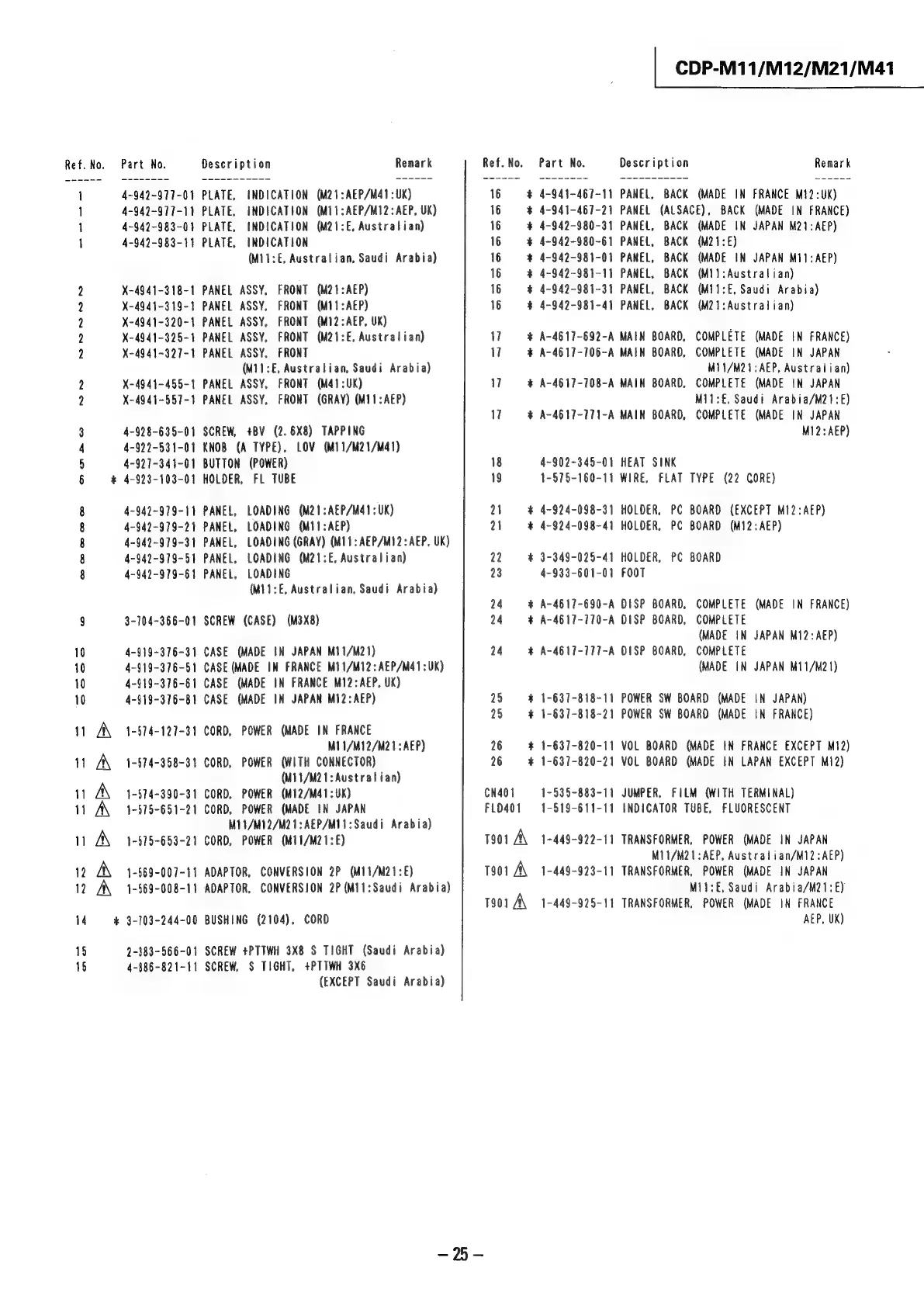 Sony CDP-M11 - Mechanical Section Parts Breakdown