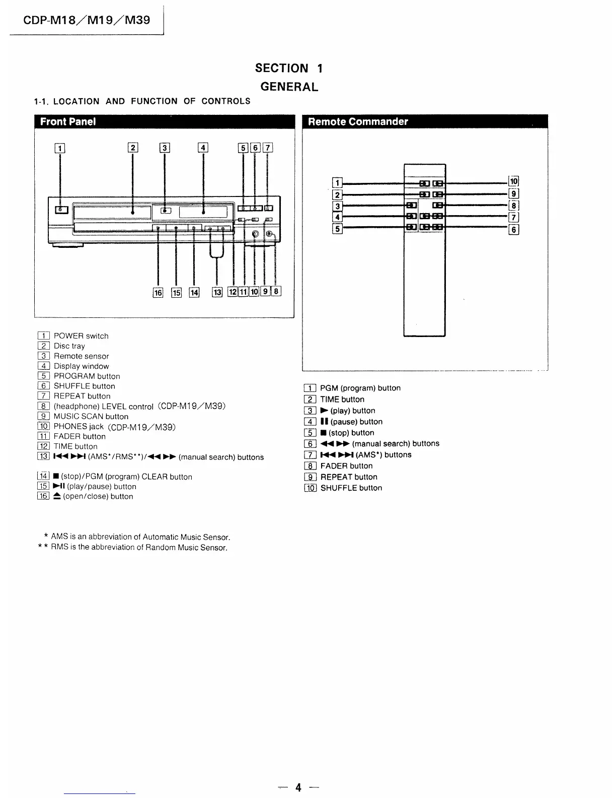 Sony CDP-M18 - SECTION 1 GENERAL; 1-1. Location and Function of Controls