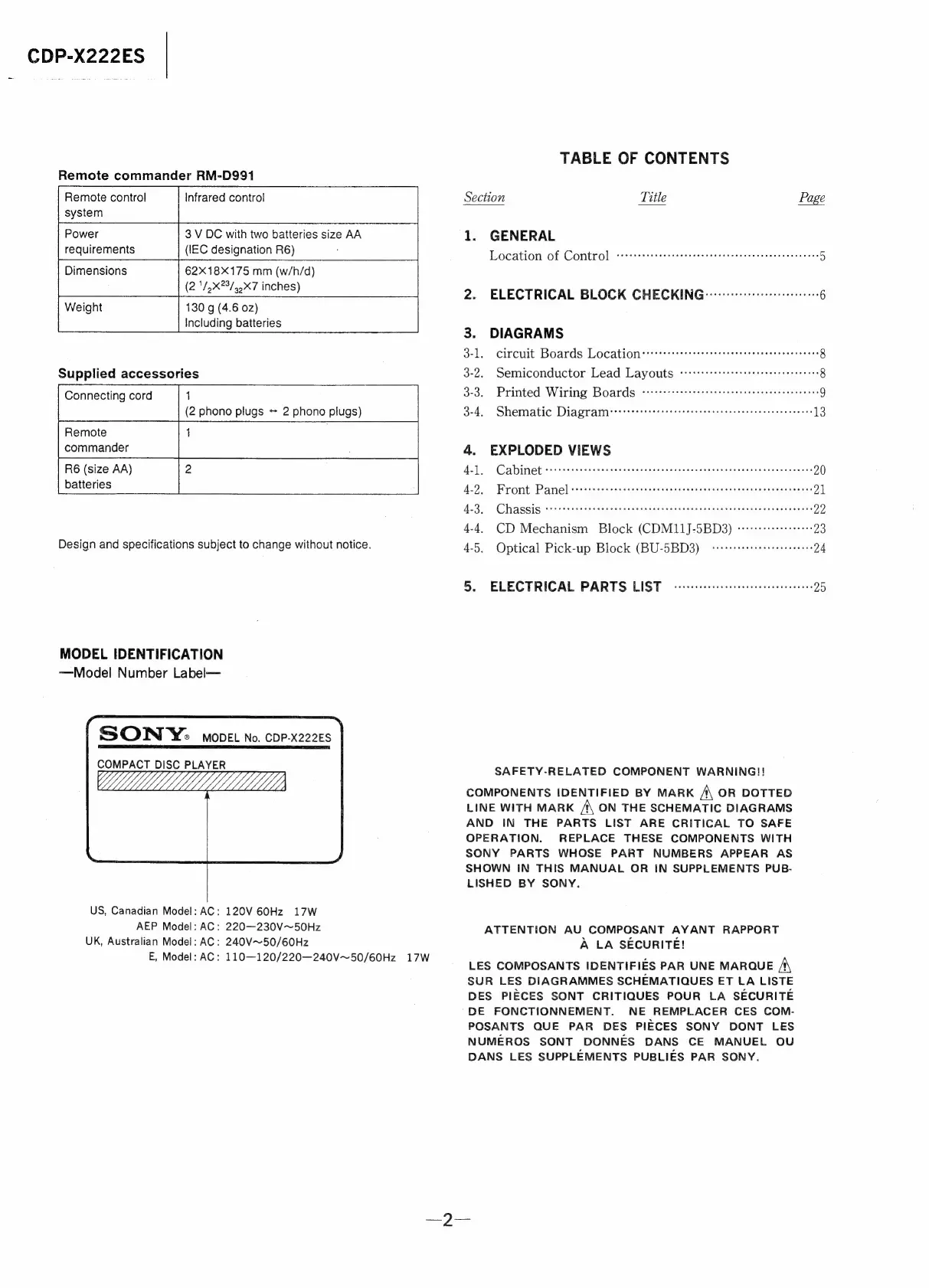 Sony CDP-X222ES - Model Identification