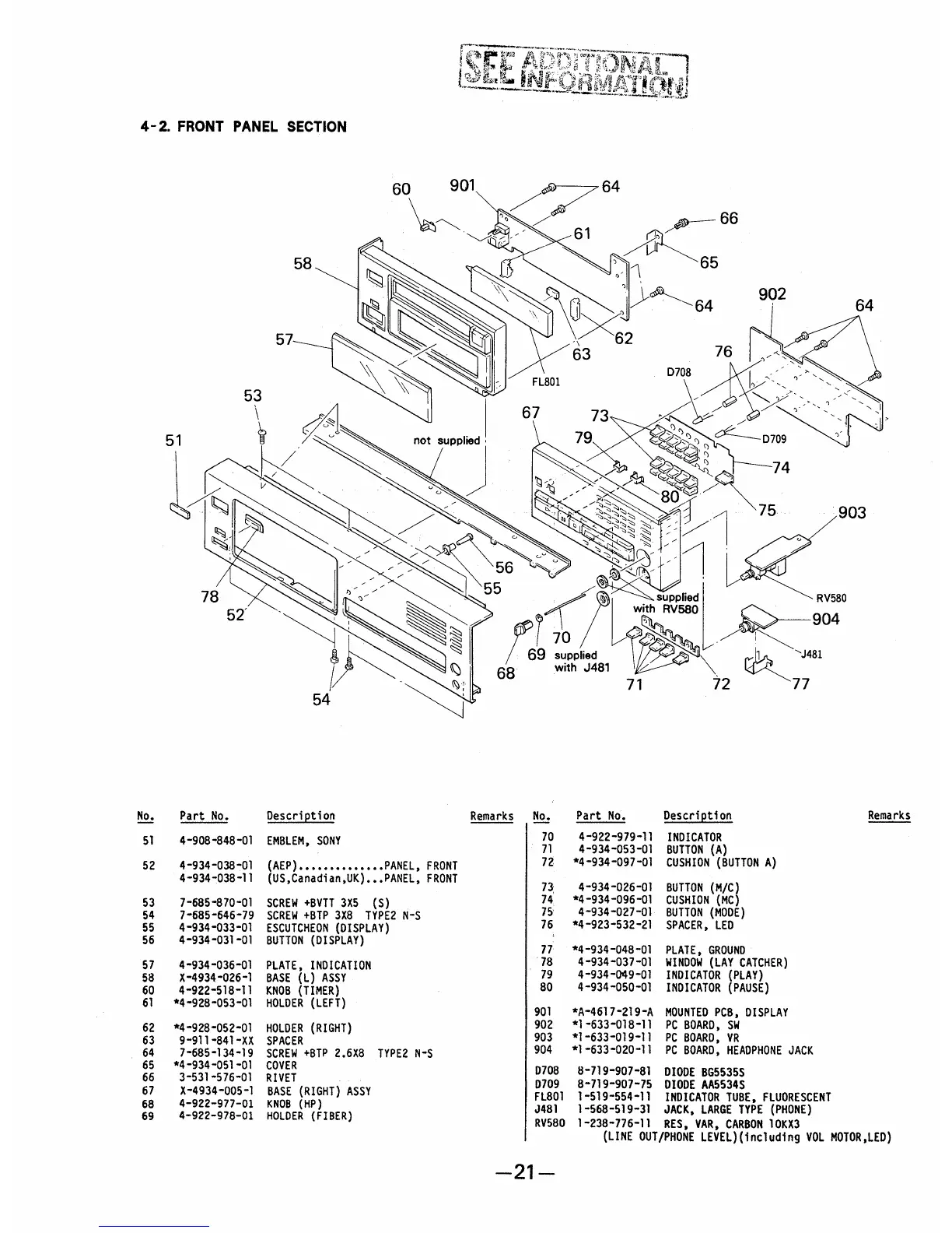 Sony CDP-X33ES - Section 4: Exploded Views (Continued); Front Panel Exploded View