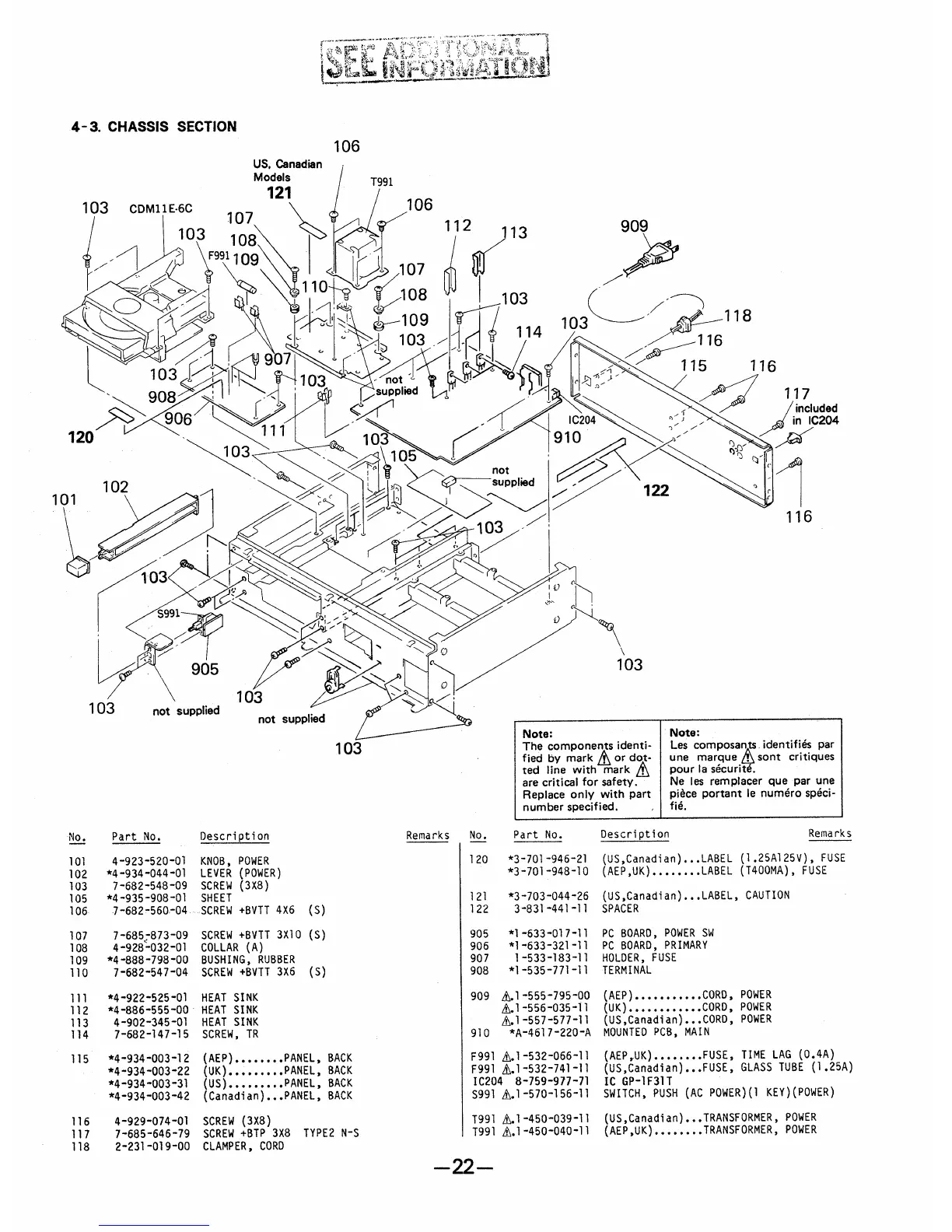 Sony CDP-X33ES - Section 4: Chassis Section; Chassis Exploded View