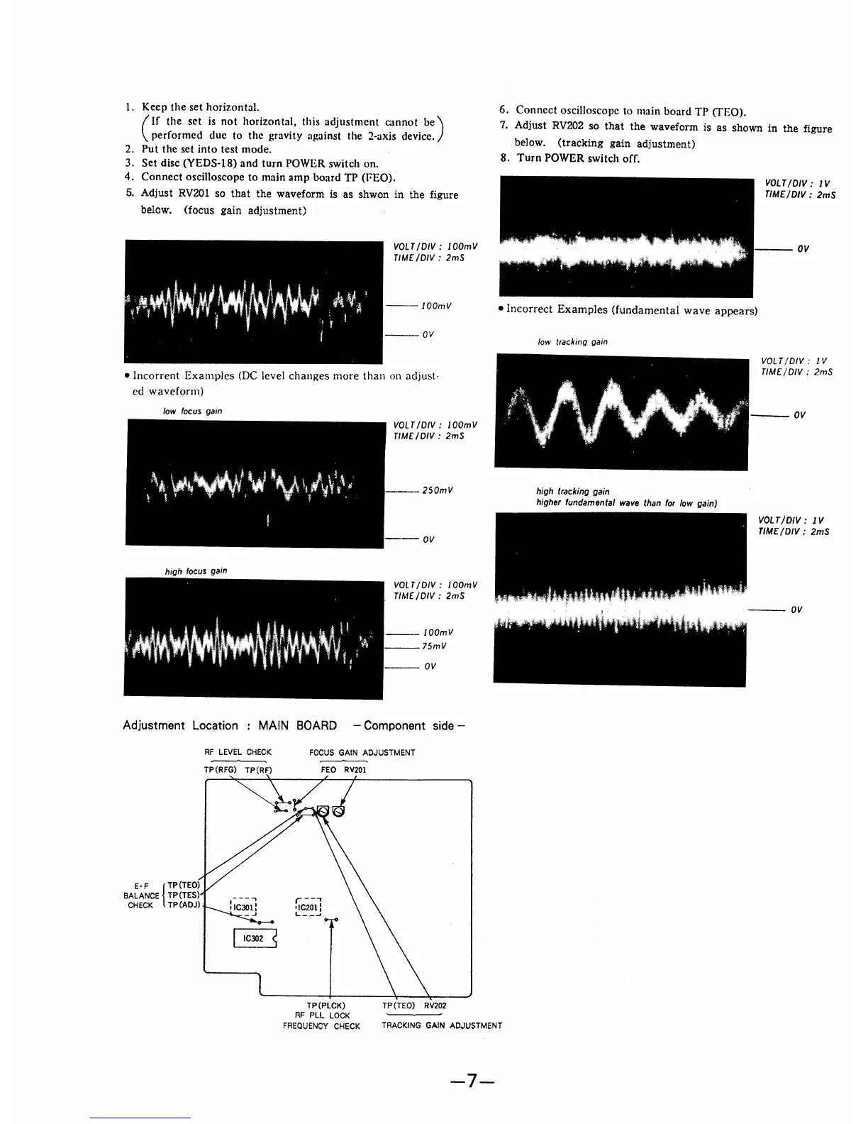 Sony CDP-X33ES - Section 2: Electrical Adjustments (Continued); Focus Gain Adjustment Procedure; Tracking Gain Adjustment Procedure