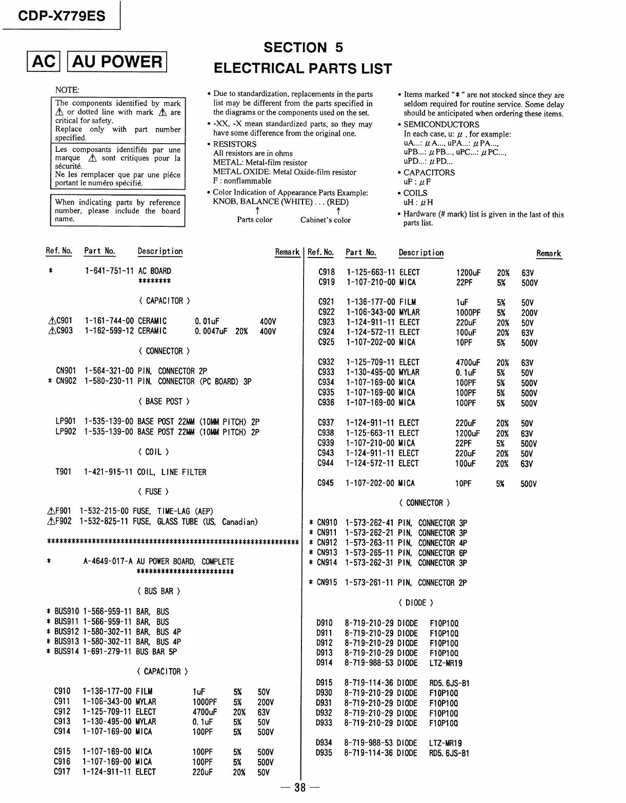 Sony CDP-X779ES - Electrical Parts List