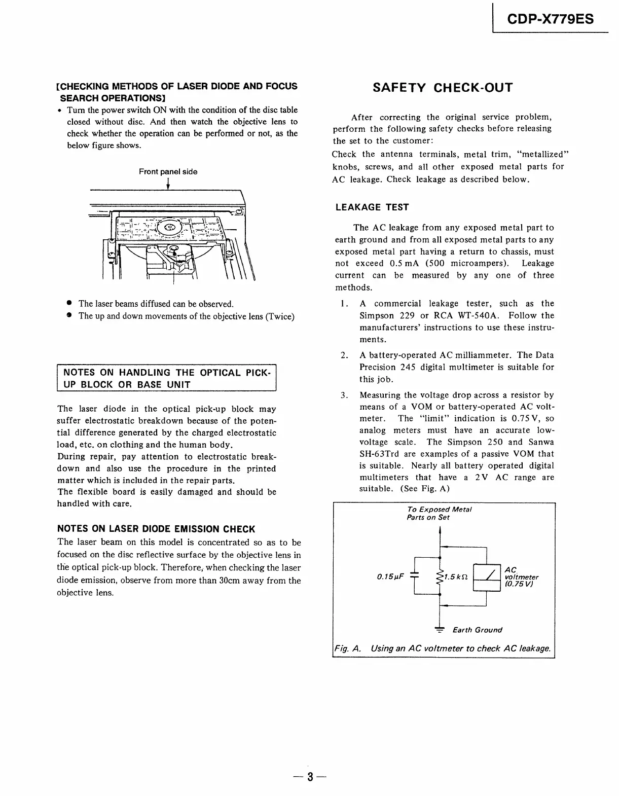 Sony CDP-X779ES - Safety Information; Safety Check-out and Leakage Test