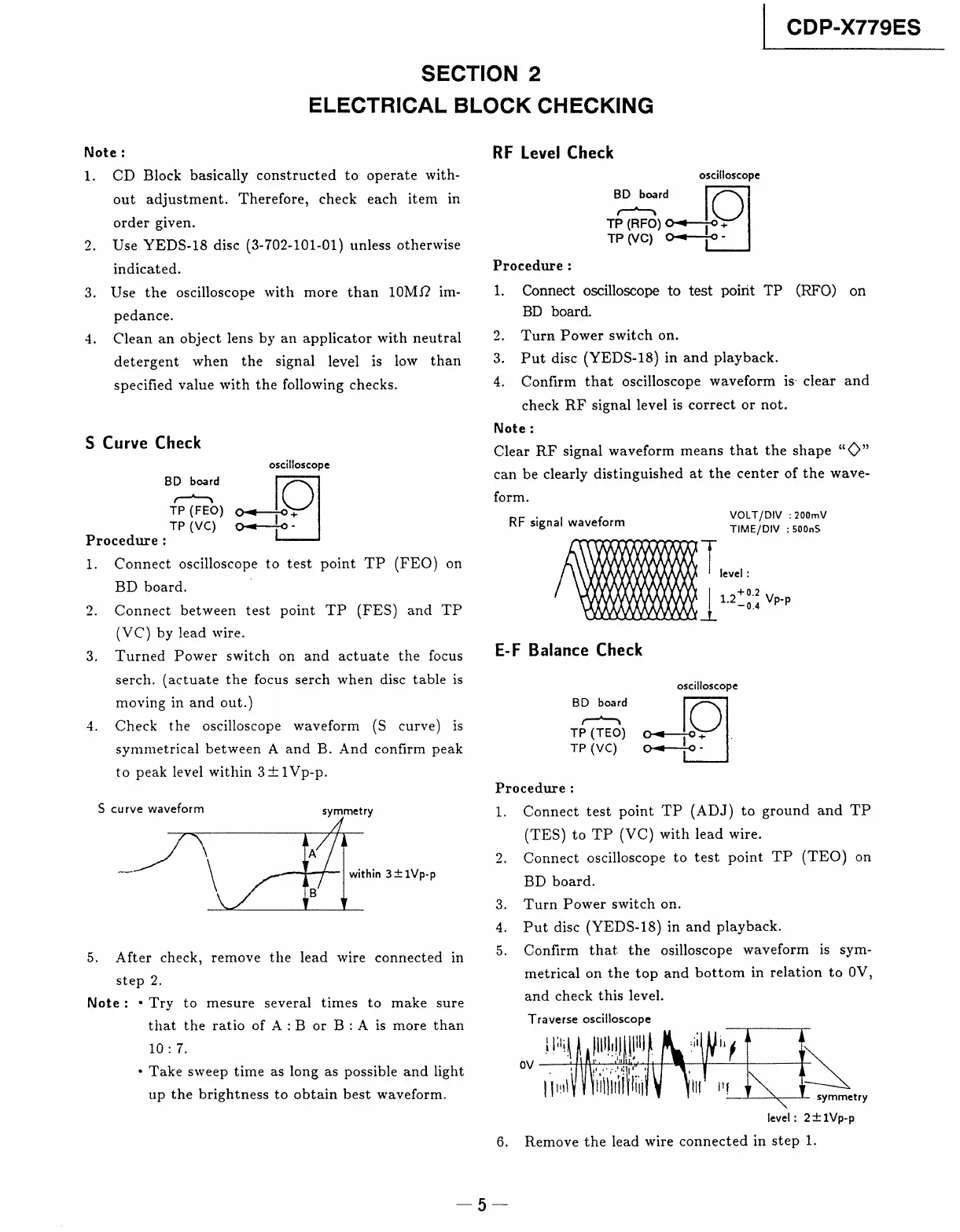 Sony CDP-X779ES - Electrical Block Checking