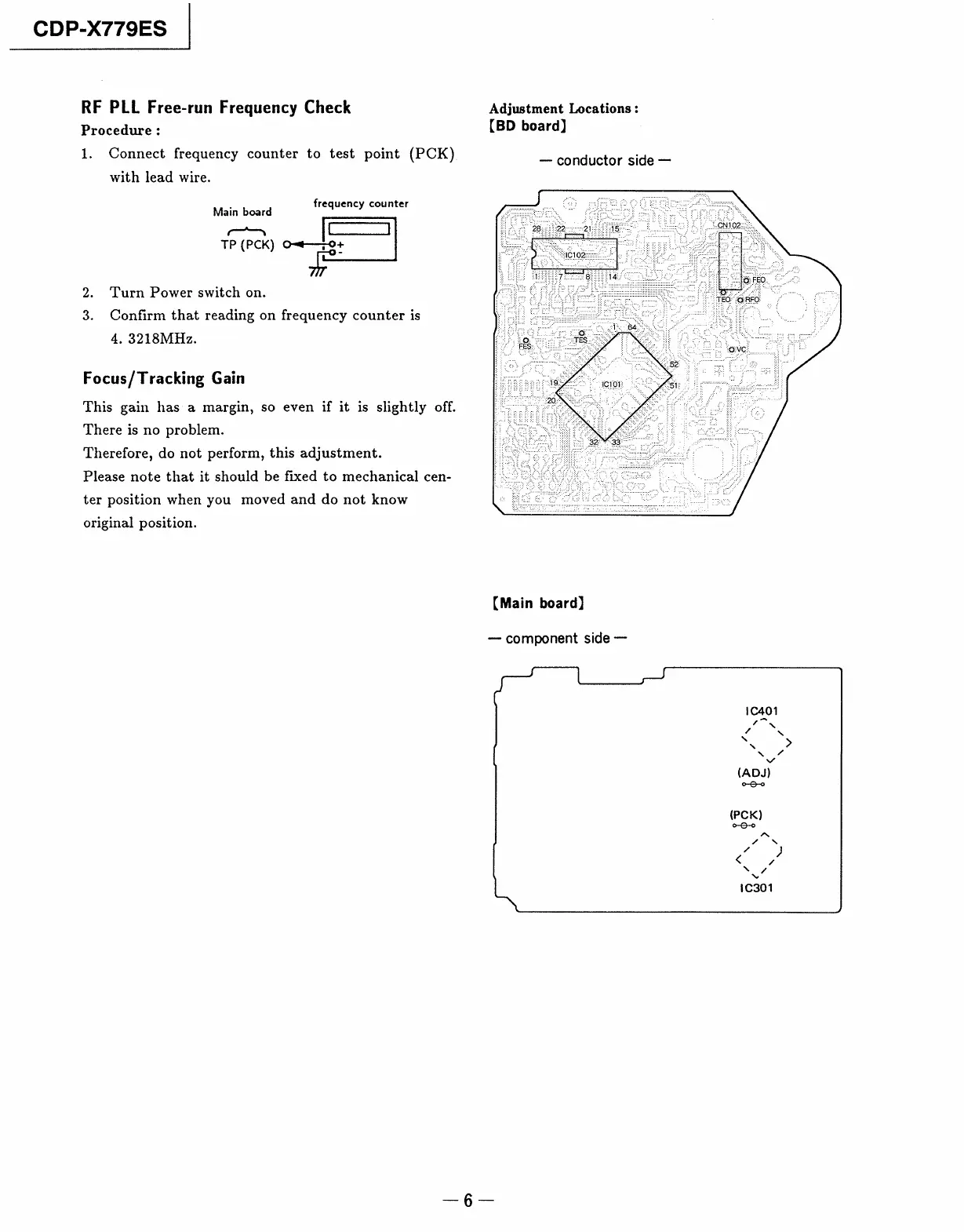 Sony CDP-X779ES - Technical Adjustments and Checks; RF PLL Free-run Frequency Check; Focus and Tracking Gain Notes