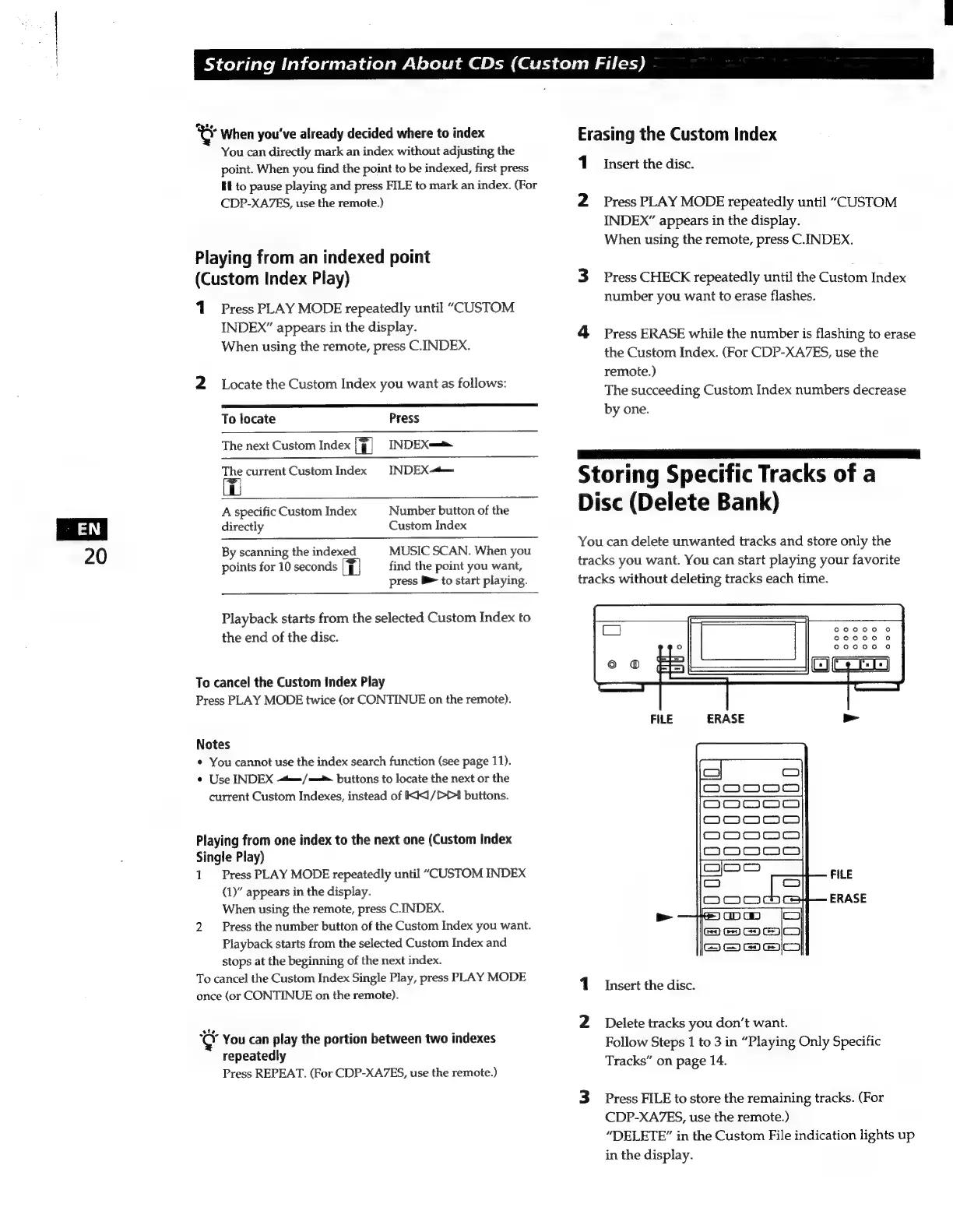 Sony CDP-XA3ES - Storing Specific Tracks (Delete Bank)