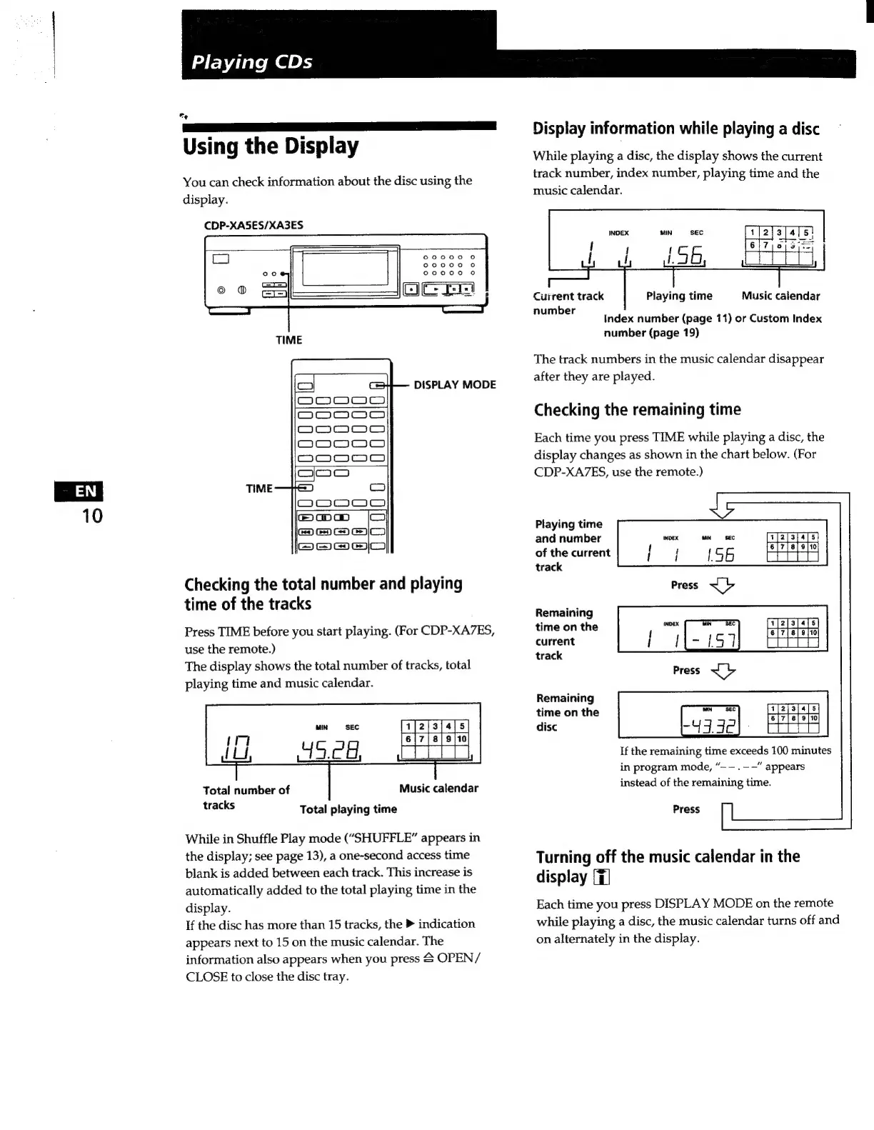Sony CDP-XA5ES - Playing Cds; Using the Display de