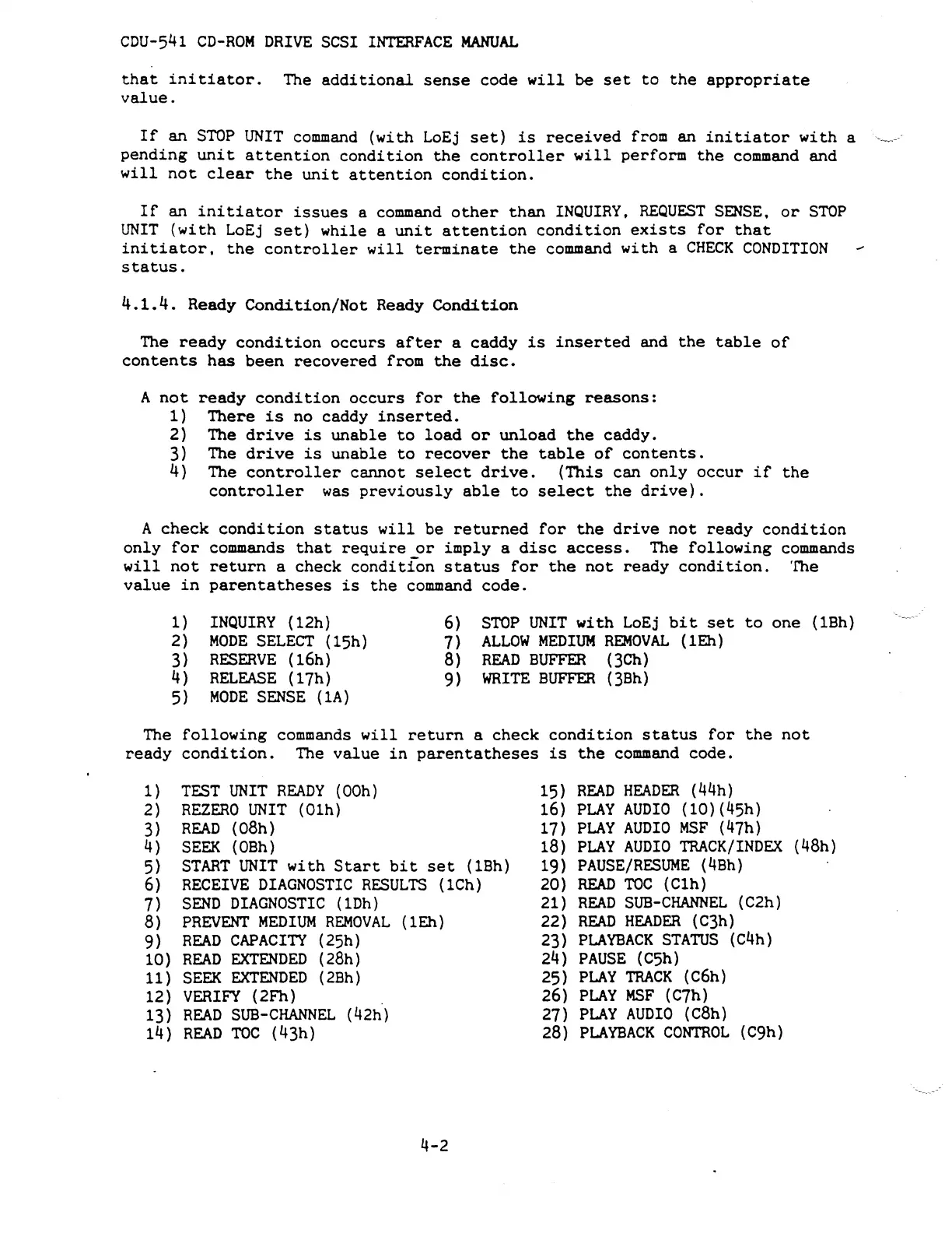 Sony CDU-541 - Ready Condition;Not Ready Condition