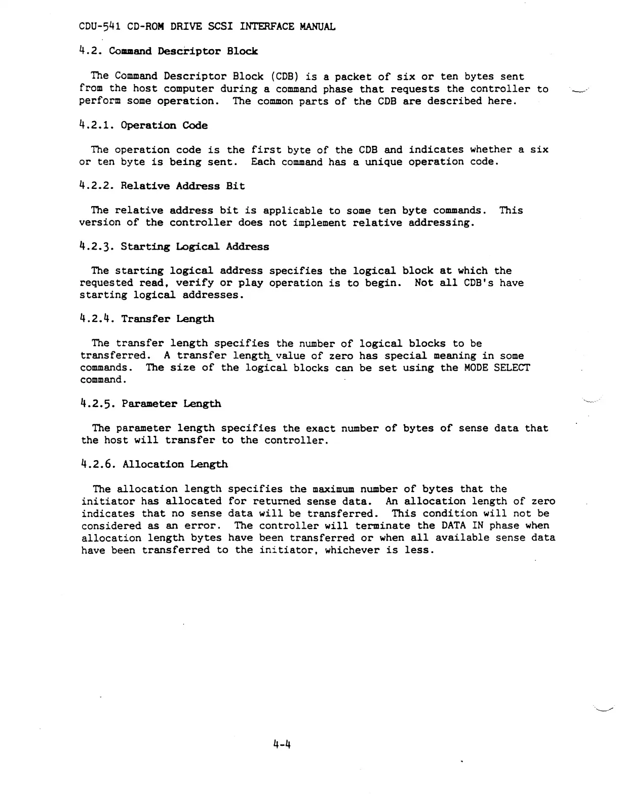 Sony CDU-541 - Command Descriptor Block (CDB)