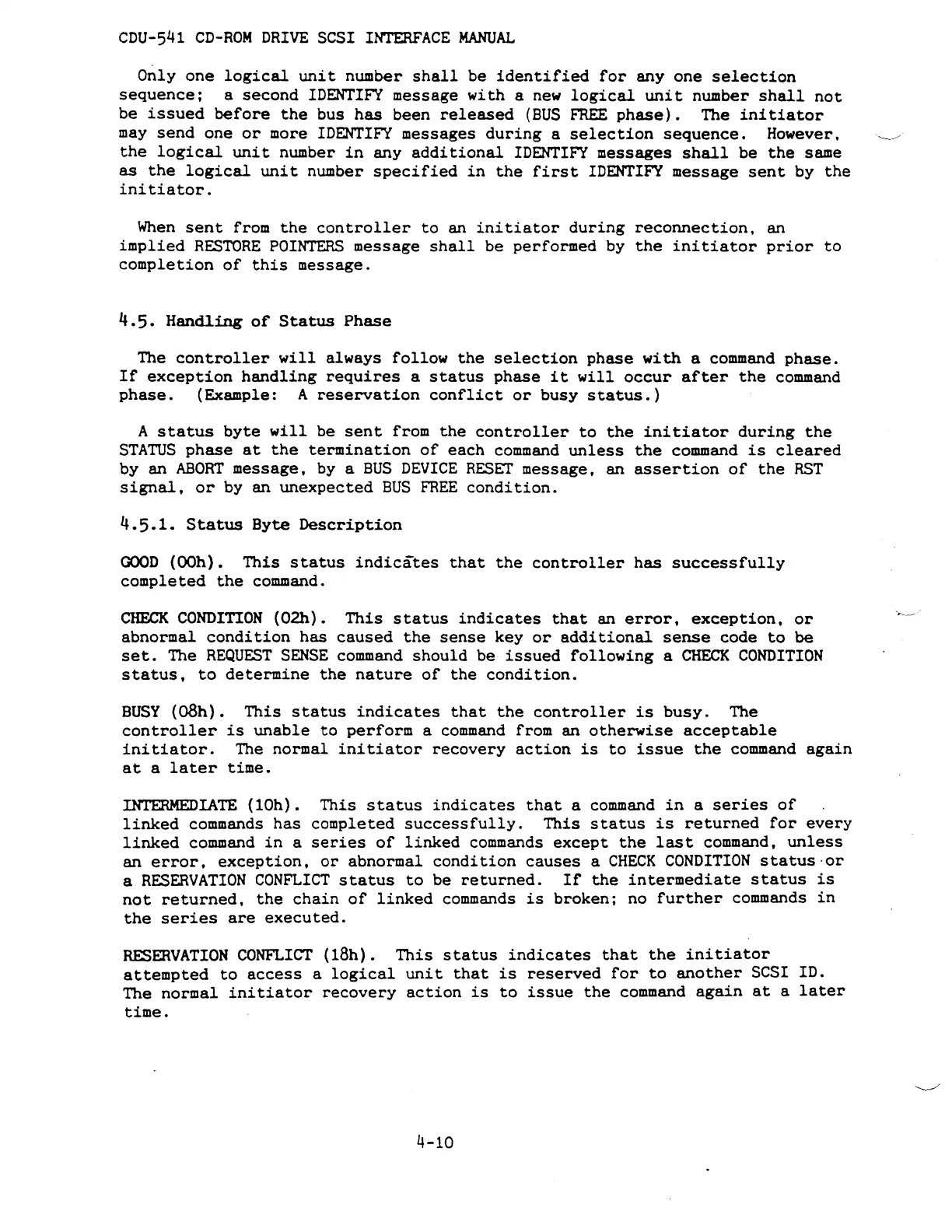 Sony CDU-541 - Handling of Status Phase
