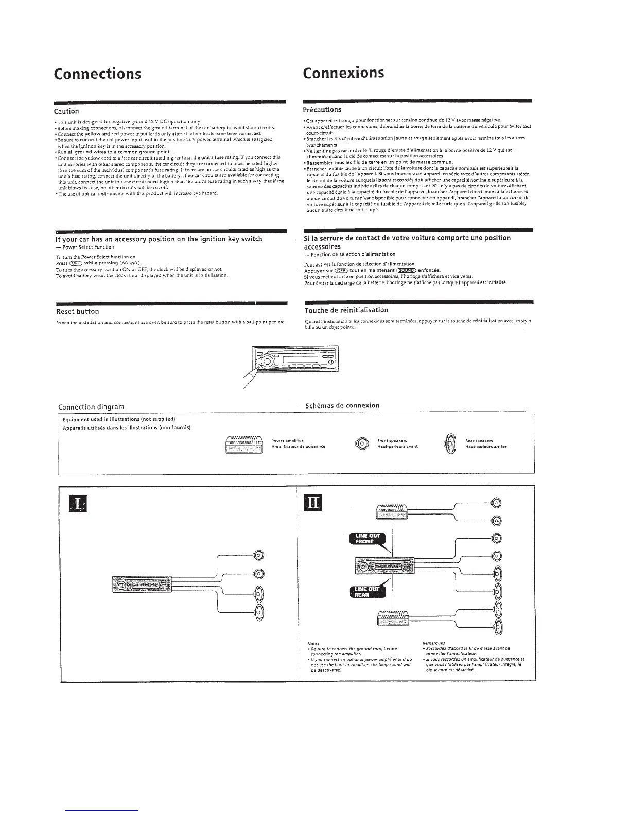 Sony CDX-2250 - Wiring and Connection Guide; Connection Precautions and Power Settings; Wiring Diagrams and Lead Details