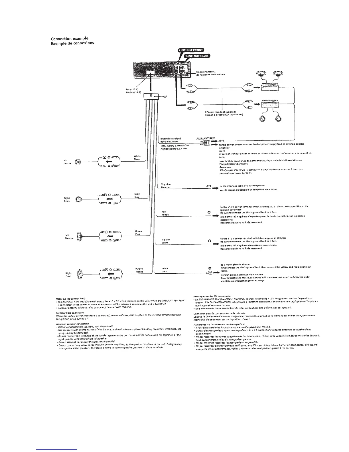 Sony CDX-2250 - Connection Examples and Lead Details; Typical Unit Connection Diagram; Control Lead and Speaker Wiring Notes
