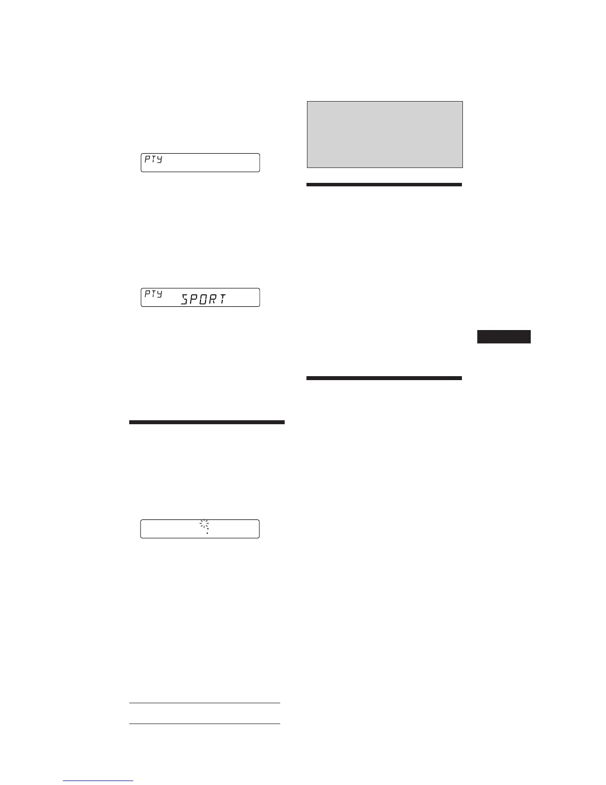 1 Press (PTY) during FM reception until