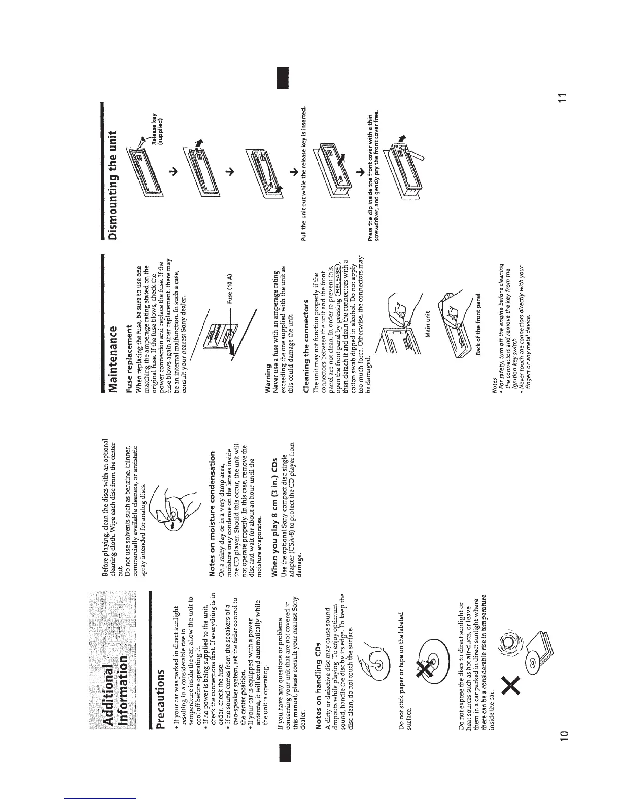 Sony CDX-4250 - Additional Information and Maintenance; General Precautions; Maintenance and Dismounting
