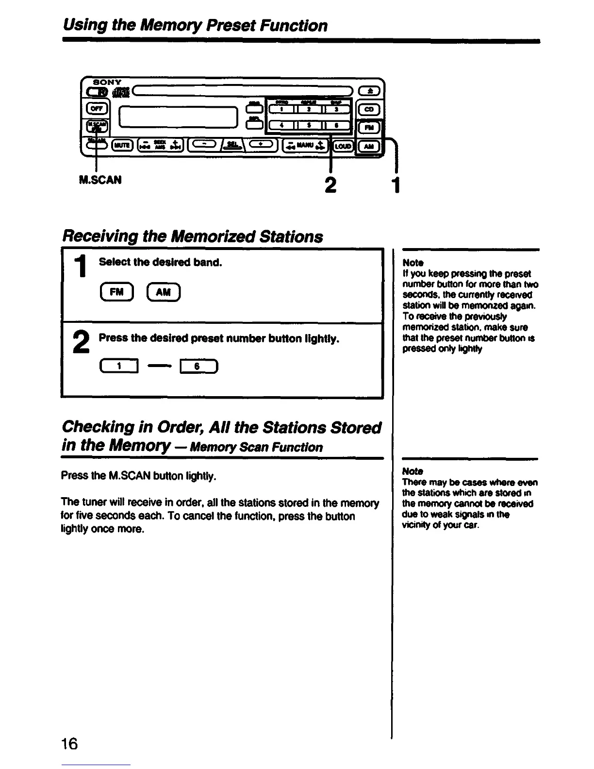 Sony CDX-5060 - Receiving the Memorized Stations; Checking in Order, All the Stations Stored in the Memory