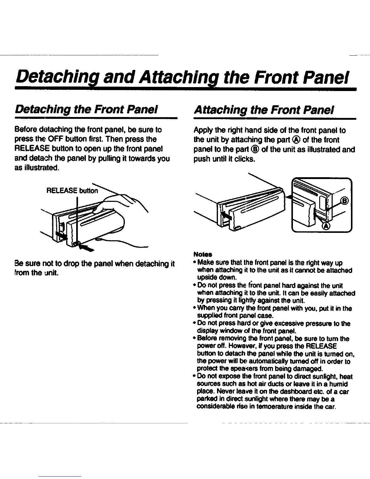 Sony CDX-5060 - Detaching and Attaching the Front Panel