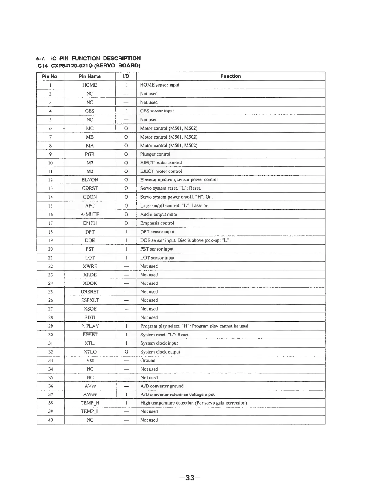 Sony CDX-51 - IC Pin Function Description
