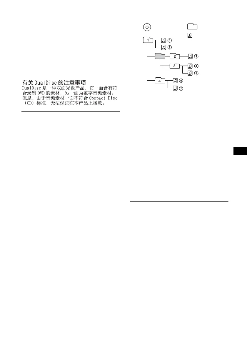 – 光盘中含有的 MP3/WMA 文件 (曲目)和文件