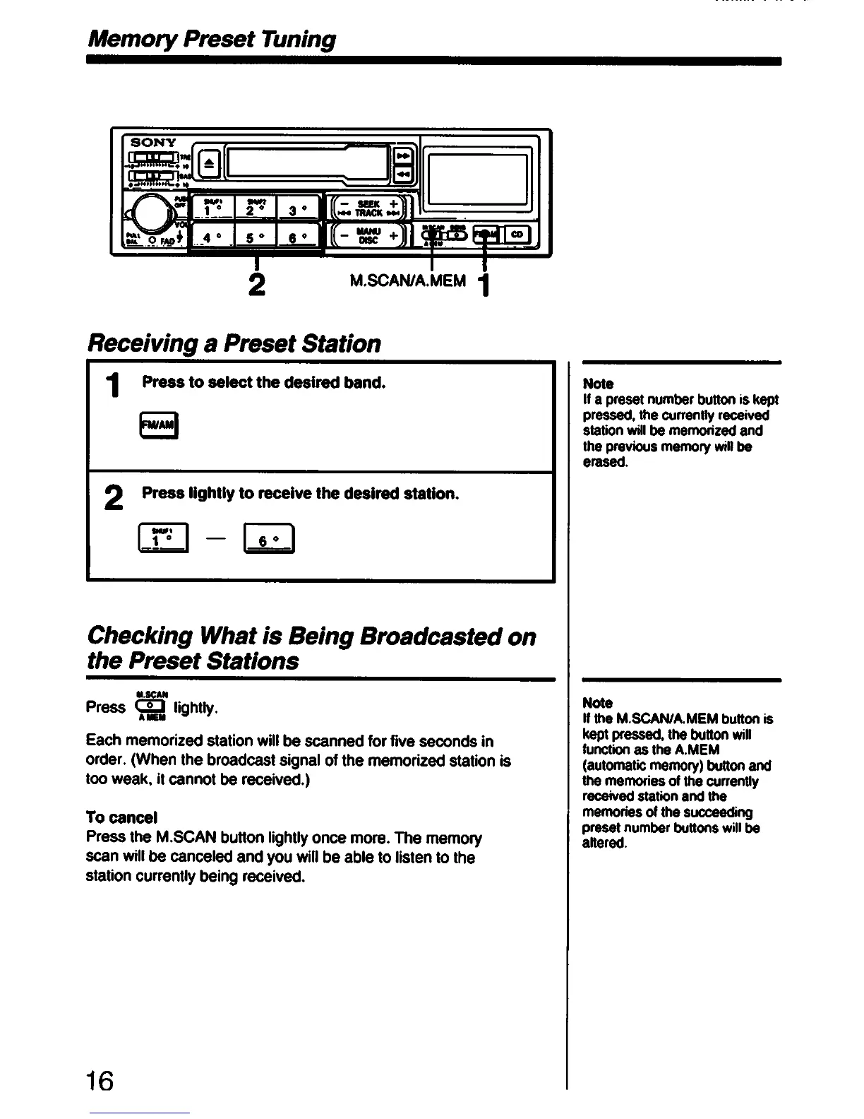 Sony CDX-A55 - Receiving a Preset Station; Checking What Is Being Broadcasted on the Preset Stations